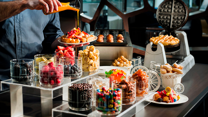Occupying the top floors of a mighty skyscraper in Kowloon, The Ritz-Carlton Hong Kong offers plenty of photo shoot-worthy views of the city skyline. However, if you’re looking to inject color and whimsy into your feed, look no further than their restaurant Ozone’s newly revitalized Sunday brunch. Free-flowing Dom Pérignon gets the creative juices flowing while extensive topping choices ensure your waffles are bursting with flavor and vibrant hues.