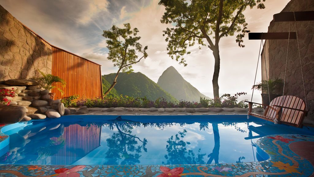 Looking over Ladera, we envision Oprah exclaiming, “You get a pool! You get pool! Everybody gets a pool!” They come with the rooms, which live a thousand feet up from the Caribbean along a ridgeline framed by the perfectly pointed Pitons.