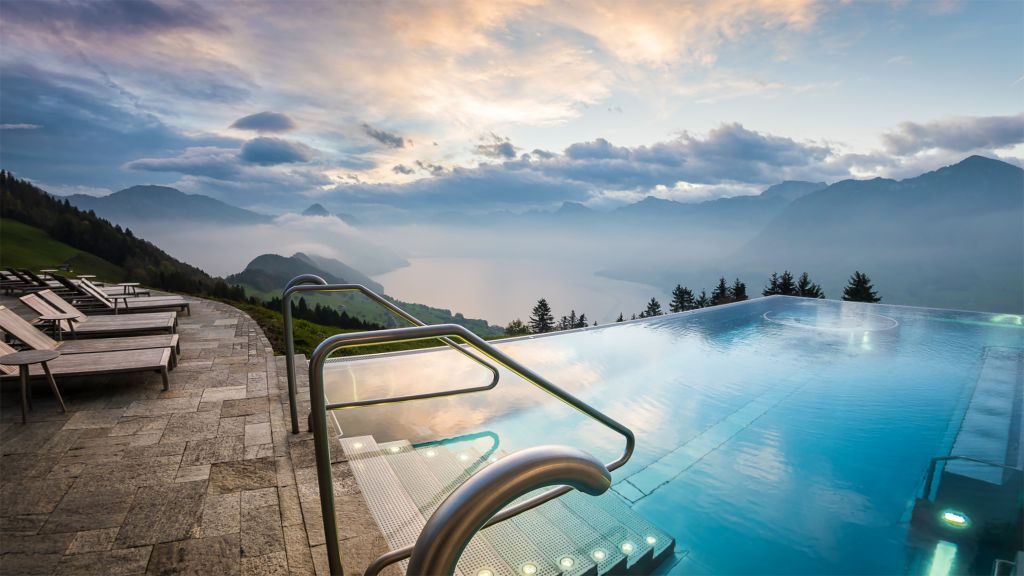 A darling of Instagram for obvious reasons, the pool at Hotel Villa Honegg is as picturesque as they get—just rest on the edge and gaze out at Lake Lucerne and the surrounding Swiss Alps. Seeing as it’s heated, it’s good to go year-round.