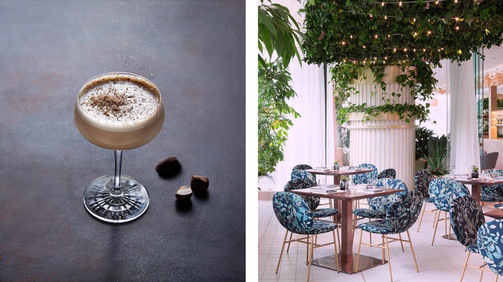 There’s no reason a holiday cocktail has to be overtly so. Gebre at InterContinental Barcelona gives imbibers a chance to discover regional delights, like rum from the Canary Islands, in a stunning Art Deco space. Created by David Montero, their Insulam cocktail features those rums with fruits, for those who love tropical flavors, but with a festive dressing of red raspberry powder encapsulating the glass.