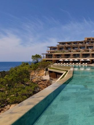 On the island’s north coast, with views over beautiful Cala Xarraca Bay, Six Senses Ibiza is all about wellbeing. Architect Jonathan Leitersdorf followed the contours of the 20-acre cliffside to make it look as though it’s always been here. Pulled from the landscape, the laidback colors and textures add to that au naturel feeling. Don’t miss out on a meal at one of the Eyal Shani-led restaurants—the celebrated Israeli chef developed the menus for all four. A spa treatment too at the stunning 13,000 square-foot Six Senses Spa which includes a hammam, cryotherapy chamber and an Alchemy Bar for blending custom essential oils to bring home.