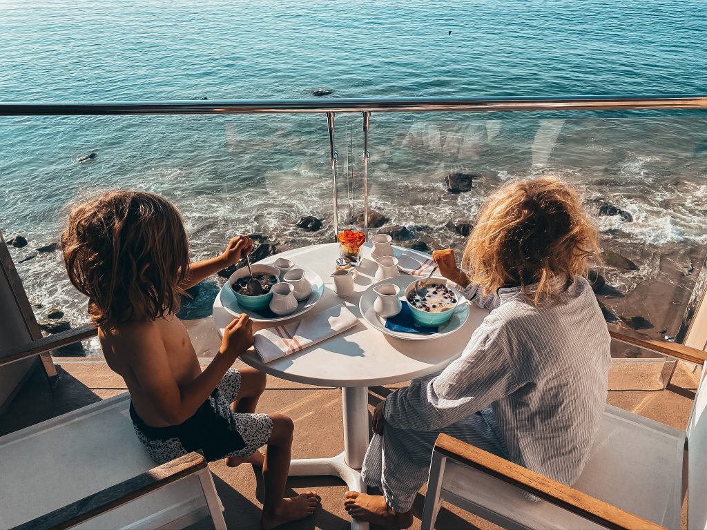 The next day, we woke with the sun and while I packed up our overnight cases, the boys enjoyed room service. Check-out wasn’t until noon so we snuck in another magnificent beach walk before heading back up the PCH towards home.