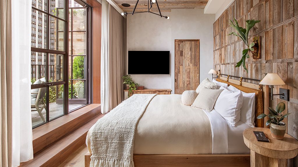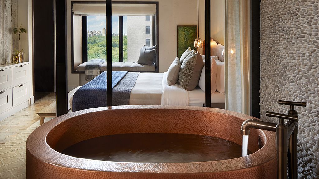 Thoughtful touches bring nature into each of the 229 guest rooms and suites. Step into your quiet reprieve from the bustling city below and be surrounded by a host of natural materials. From reclaimed woods and treetop views, to a custom organic cotton mattress and sheets, the materials evoke the natural beauty and calming energy of Central Park.