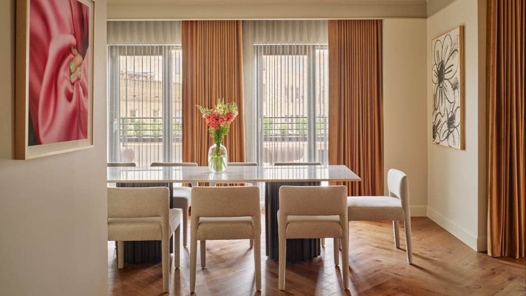 With 73 guest rooms and suites, this urban retreat channels a refined blend of international style and modern luxury. Warm and well-edited spaces take cues from cities around the world, while thoughtful touches like plush bedding and rainfall showers ensure a stay that’s both comfortable and stylish.