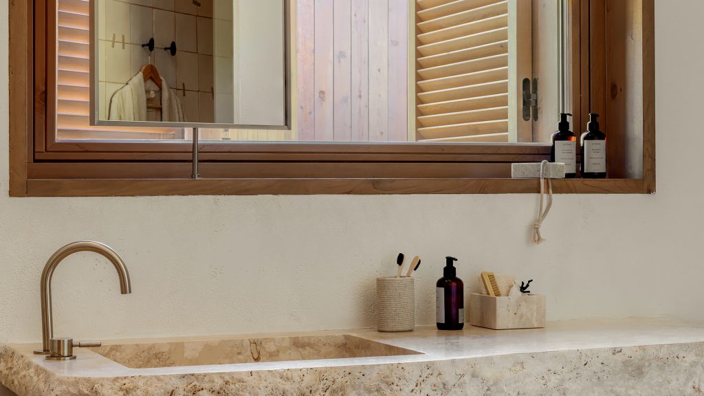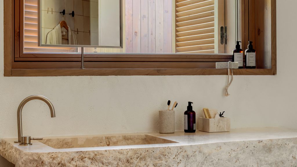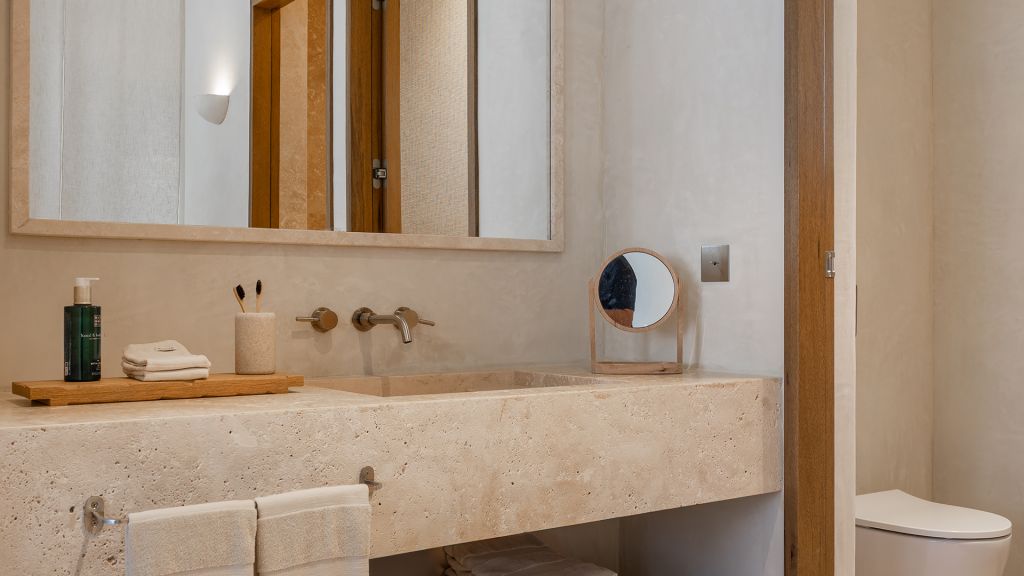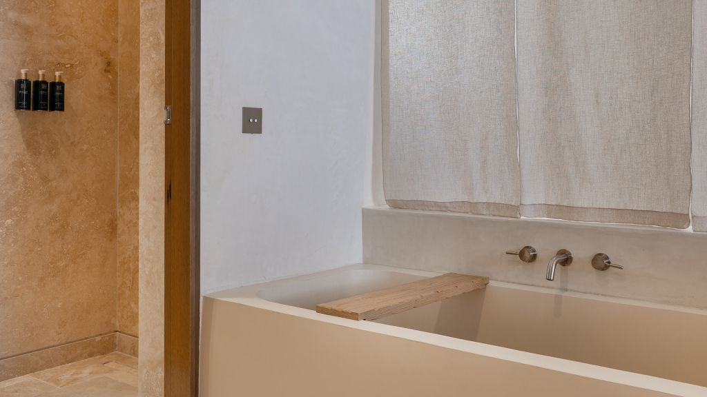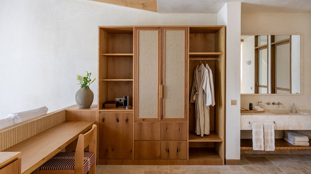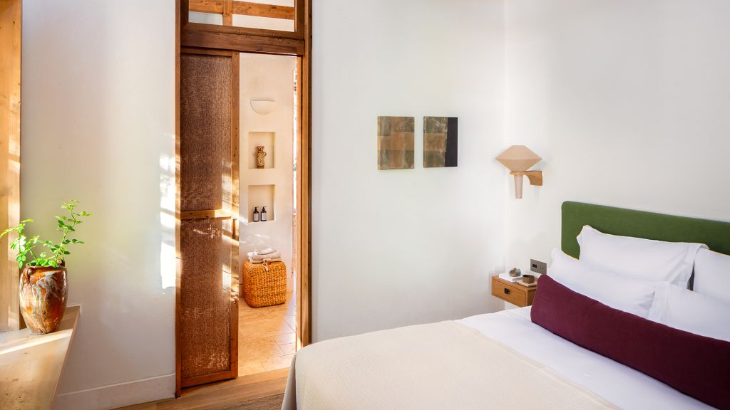 This stand alone cabana features a private terrace and front garden, two bedrooms with ensuite bathrooms, queen or twin bed, living room, fireplace, minibar, shower, coffee and tea setup, safe. The interiors are inspired by the light and airy essence of the Mediterranean.