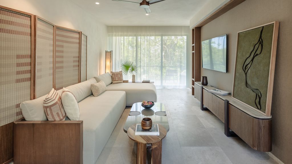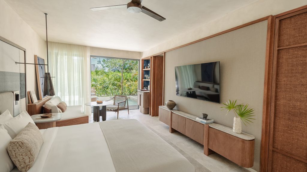 Embrace views of the Caribbean from your beachfront studio offering an indulgent plunge pool on a private balcony or small terrace. Inside, this 710-square-foot space is furnished with a plush king bed, a luxe bathroom with a rainfall shower and an expansive lounge space for sinking into the Mayakoba vibe.