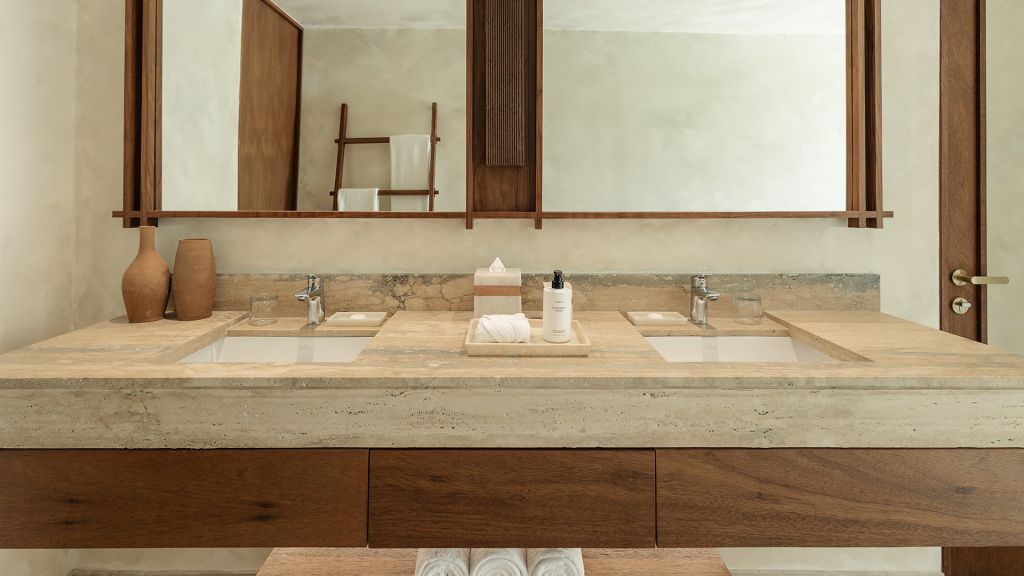 Rooms and suites here are thoughtful in their layout and orientation. Large windows and private terraces extend the indoor spaces into the tropics. Many open onto water, garden, or pool views, so light and breeze become part of the room’s design. Finishes are intentional; materials and proportions feel aligned with the natural surroundings, not imposed upon them.