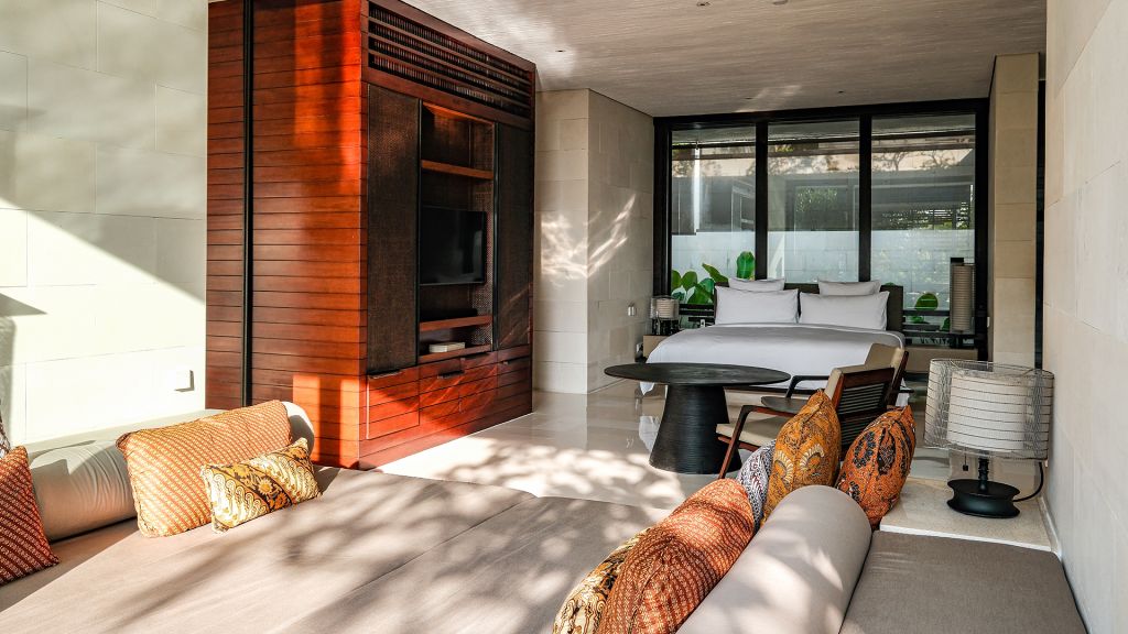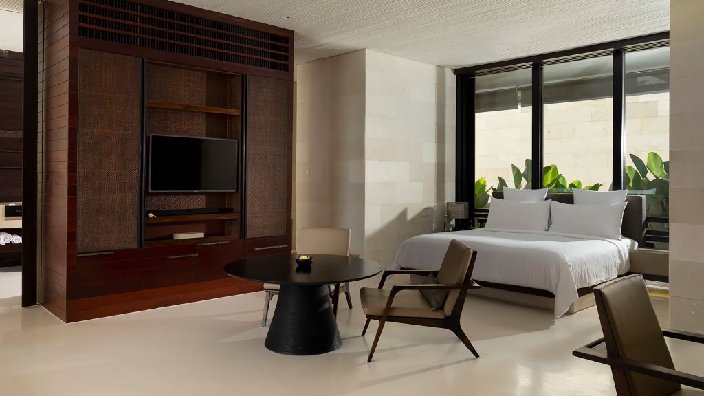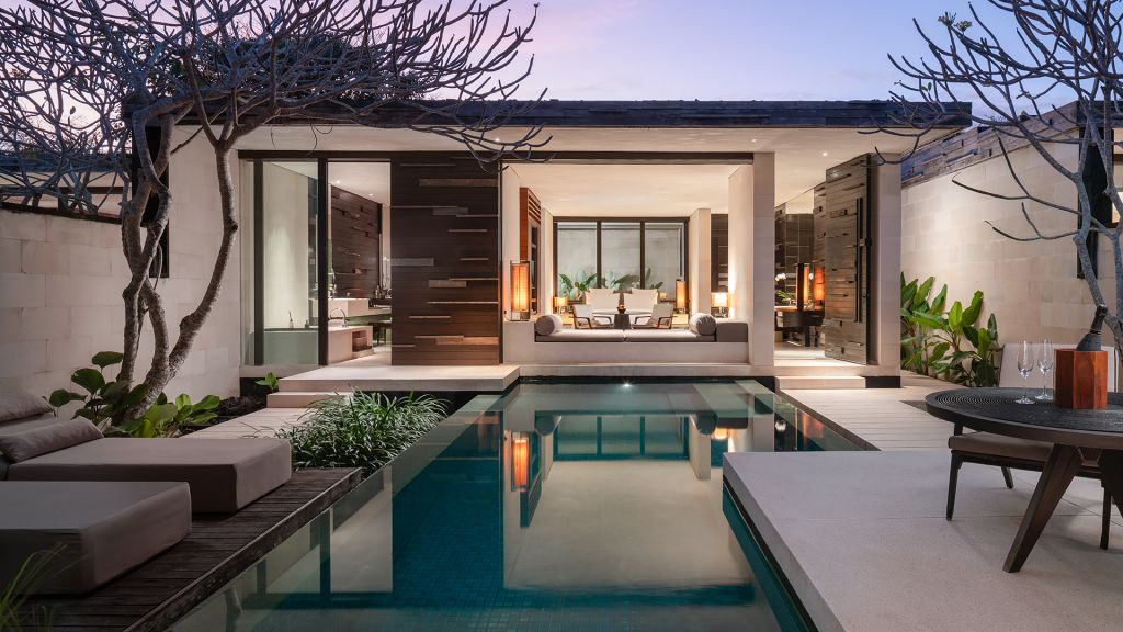 Located on gently elevated ground, these elegant one-bedroom villas with a private pool and cabana immerse you in the beauty of Uluwatu’s natural environment, complemented by the personalised care of our 24-hour Villa Host service. Designed to follow an environmentally sustainable framework, the villa’s open-plan layout and contemporary interiors are enhanced with touches of nature and traditional Balinese accents—reflected in planes of wood, water, stone and rattan. Indoor Space: 78.8 square meters | Outdoor Space: 211.20 square meters
