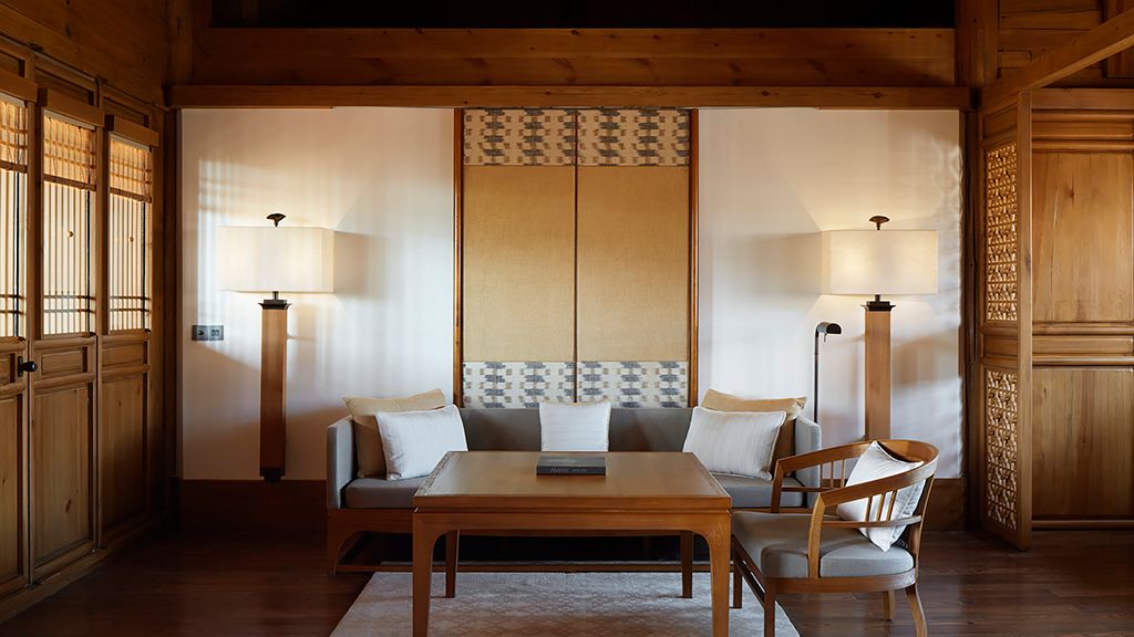 The two-bedroom Amandayan Villa is set across 440 square metres (4,736 square feet) and offers exceptional views over the rooftops of Lijiang Old Town to the mountains beyond. An expansive living area flows onto a large terrace.