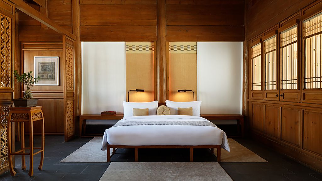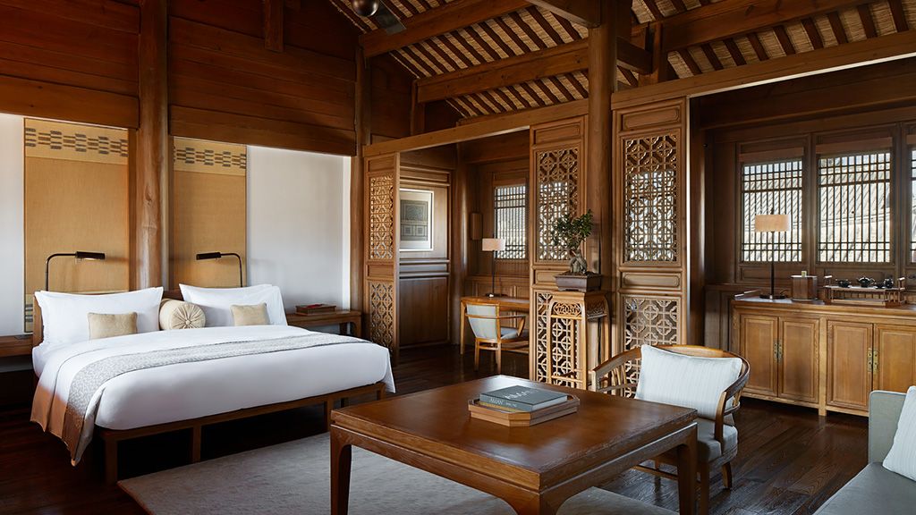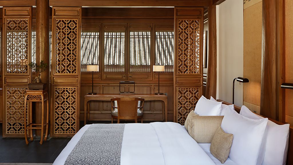 As usual with an Aman hotel, the location of Amandayan is spectacular, and then some. An ancient city, Dayan has been designated a UNESCO World Heritage Site, and it's here the hotel is perched, overlooking an intricate bridge/canal system and dramatic mountainous landscape.