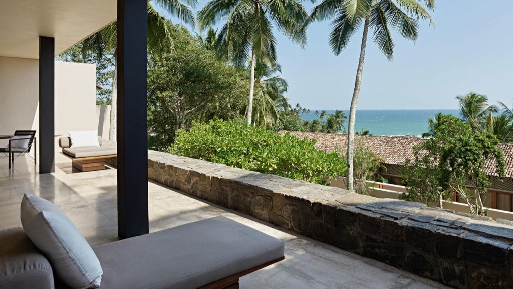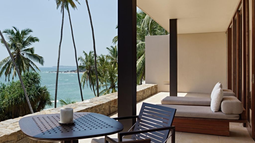 When you first arrive at Amanwella, forget all about having a typical hotel experience. There's no front desk and no check-in lines. Instead, the manager will greet you and usher you to the outdoor bar for a welcome drink, where sparse modernist design intersects perfectly with the greenery of Sri Lanka.