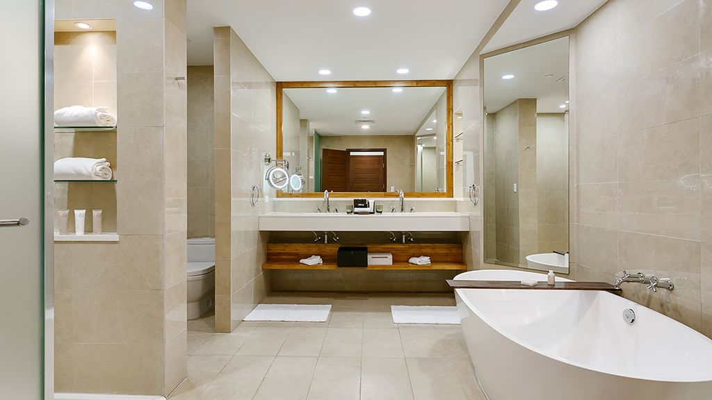 700 sqft with inspiring views of the golf course and our beautiful island from our tower, these welcoming accommodations include a king bed, seating area, large walk-in closets, and floor-to-ceiling windows. Additional amenities include a 65" flat-screen tv, espresso machine, mini-bar, stunning bath with double sinks, shower, and alissa freestanding tub.