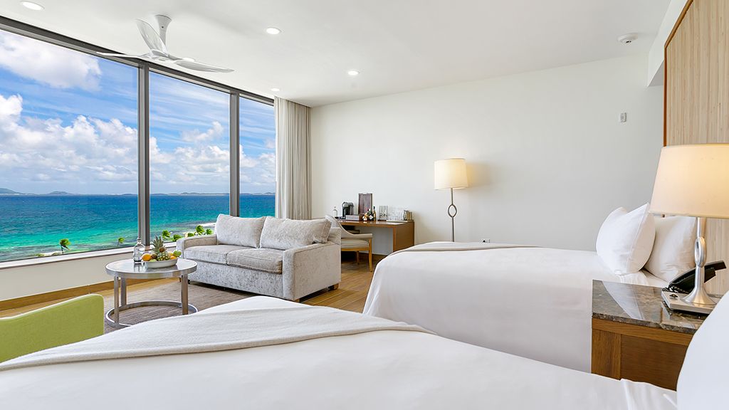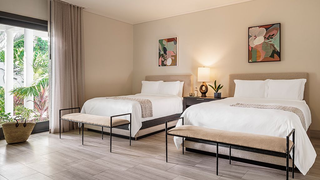 900 sqft fully renovated with a relaxed luxury aesthetic; these expansive guestrooms offer stunning pool and ocean views. Made for sharing, the resort view suite double offers a large bedroom with two double beds, a sitting area, a marble bathroom, a walk-in closet, and a 300 sqft private terrace. Additional amenities include complimentary wi-fi, flat-screen tv, a mini-bar, and a nespresso coffee machine. - connecting room options available