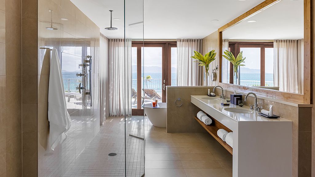 900 sqft fully renovated with a relaxed luxury aesthetic; these expansive guestrooms offer stunning pool and ocean views, a large bedroom with a king bed, sitting area, marble bathroom, expansive walk-in closet, and private 300 sqft terrace. Additional amenities include complimentary wi-fi, flat-screen tv, a mini-bar, and a nespresso coffee machine. - connecting room options available