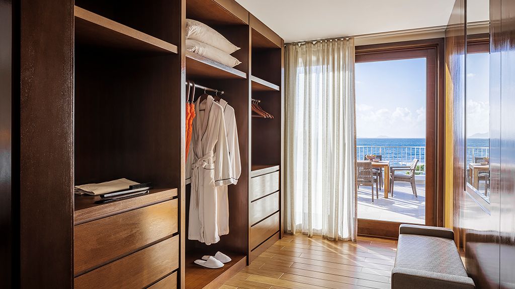 800 sqft these serene and elegant, fully renovated, beach front junior suites allow for unspoiled views of rendezvous beach and surrounding islands. The large bedroom with a king bed includes a sitting area, marble bathroom, walk-in closet, and private 225 sqft outdoor terrace. Additional amenities include wi-fi, flat-screen tv, a mini-bar, and a nespresso coffee machine. - connecting room options available