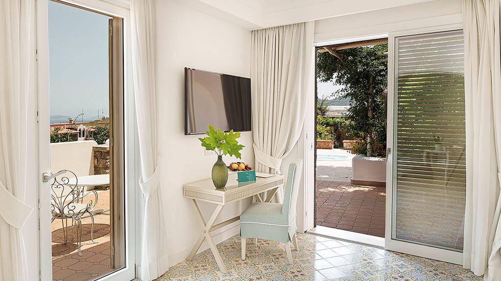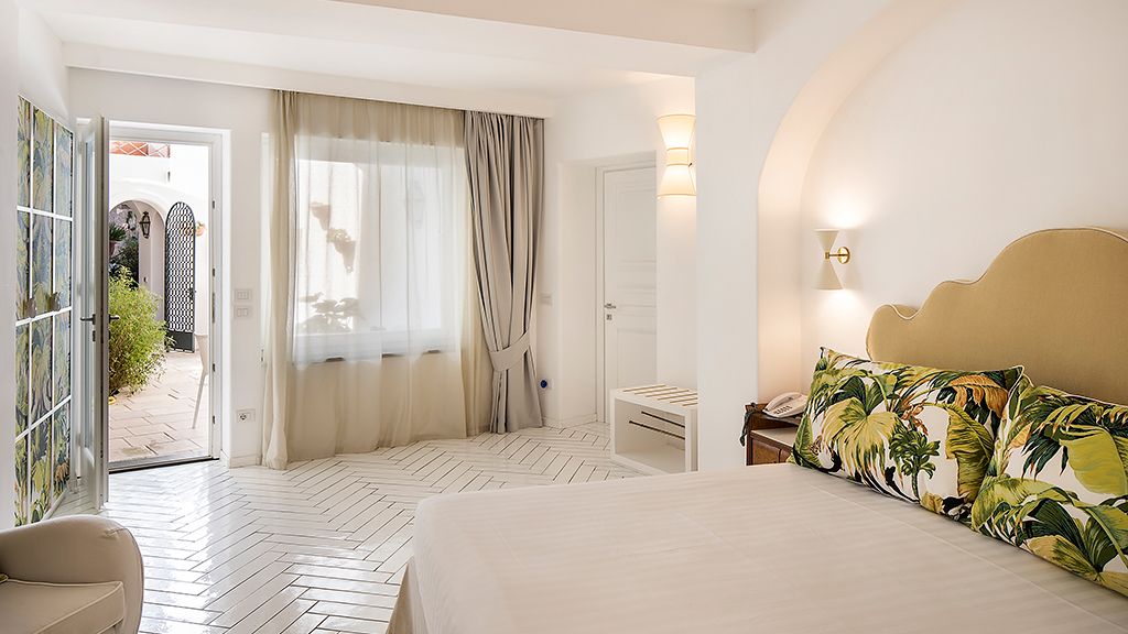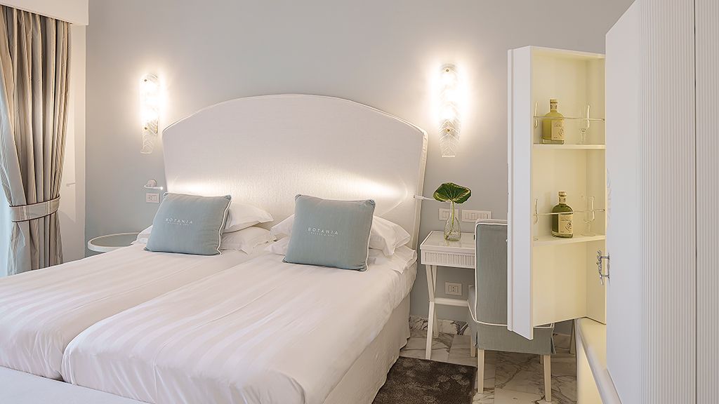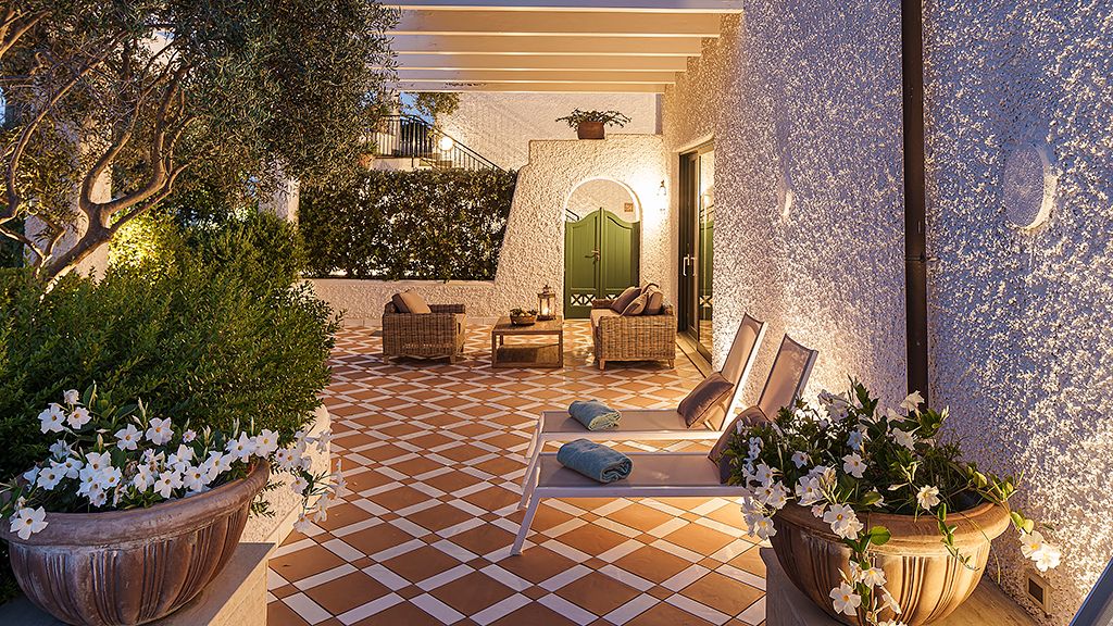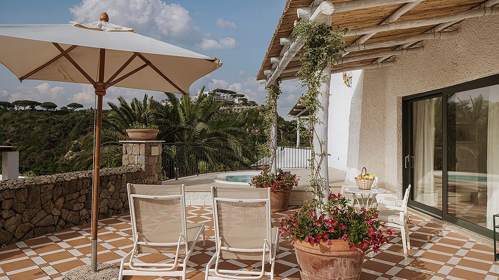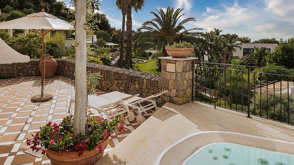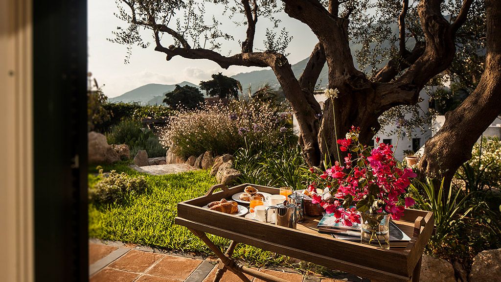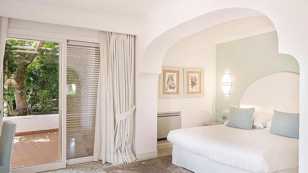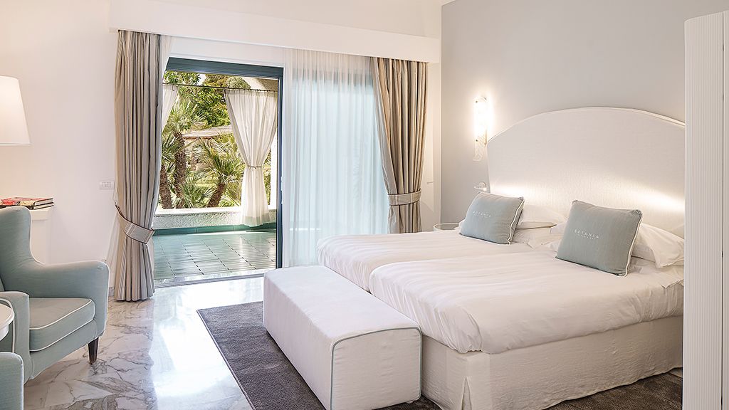 Botania Relais & Spa sits on the beautiful Mediterranean island of Ischia, which is located off the coast of Naples. International guests typically fly into Naples International Airport, before taking a short ferry or hydrofoil to the island.