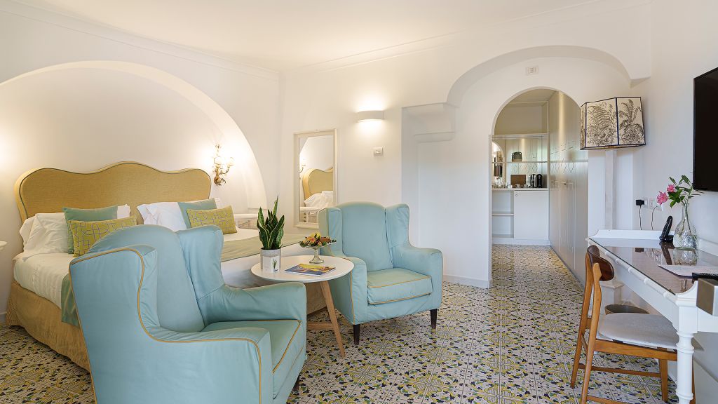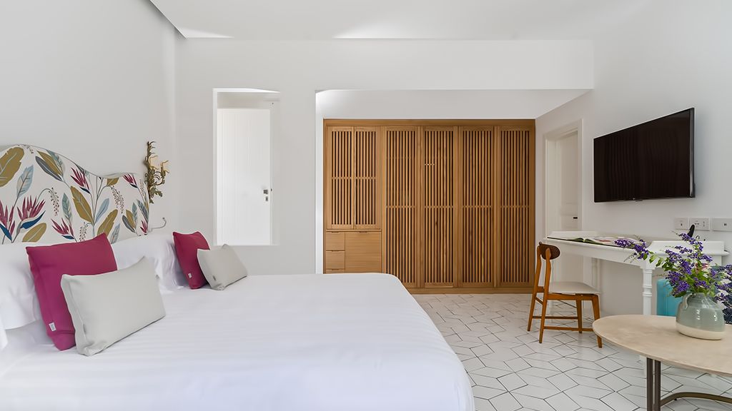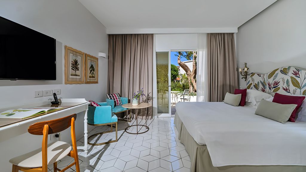 Suite with king bedm garden view and terrace with mini Jacuzzi pool.