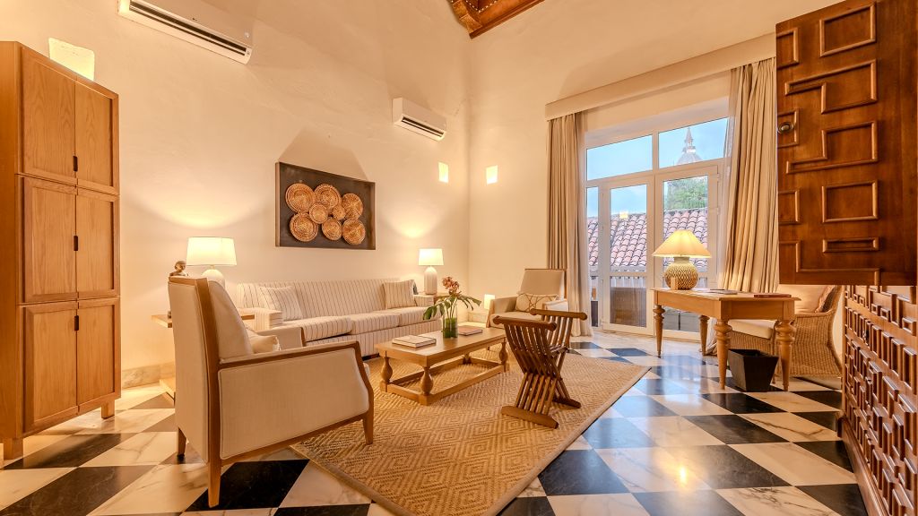 The hotel features 16 individually designed rooms and suites, each a study in classic elegance. High ceilings, original tiled floors, and bespoke furnishings create a sense of place. Spacious layouts include private terraces or balconies that overlook the courtyard or the city’s colorful rooftops.