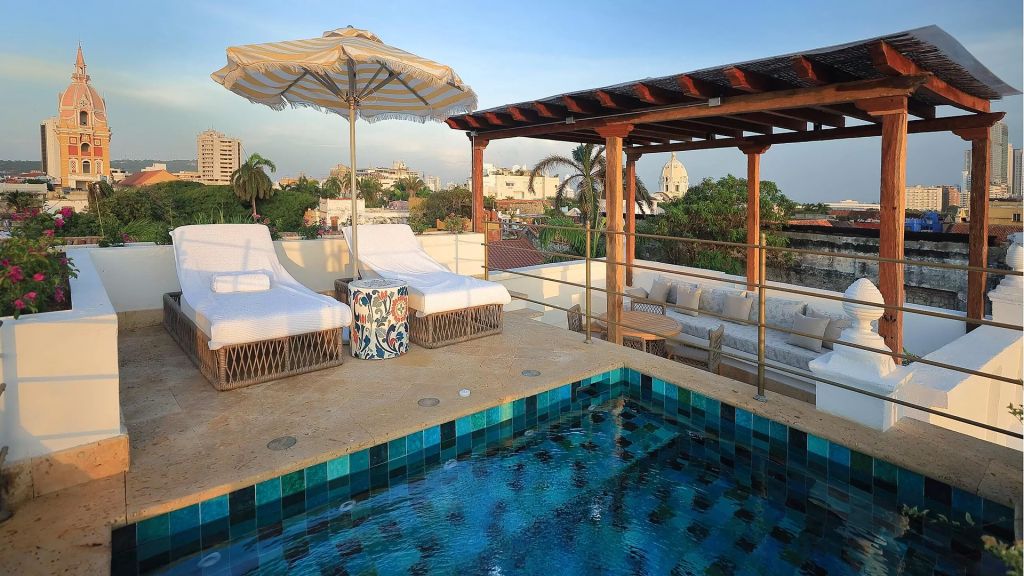 The hotel’s private courtyard with a restored colonial pool offers a rare urban oasis. Its location provides immediate access to Cartagena’s historic heart, blending intimacy with city life effortlessly.