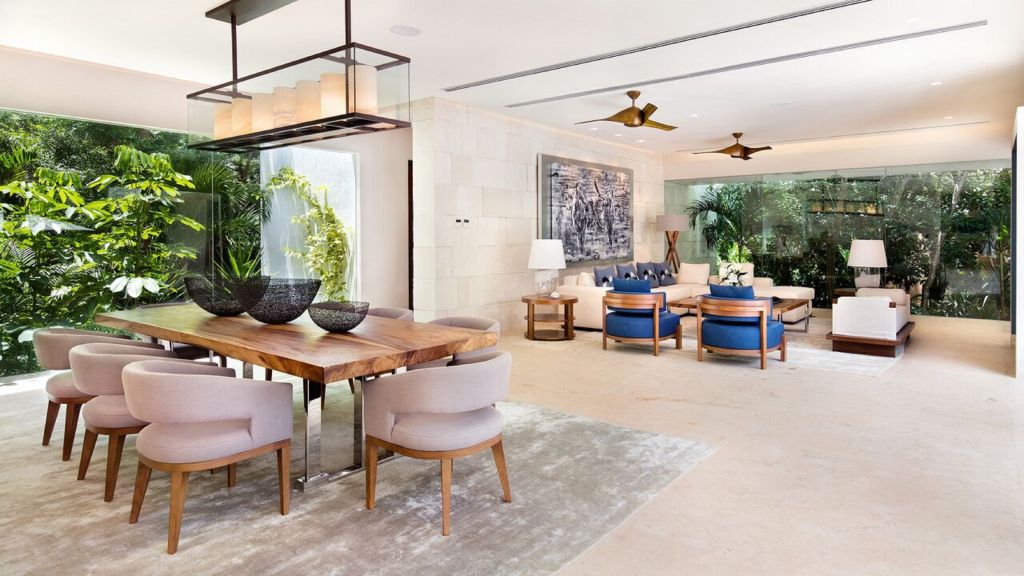 Featuring three bedrooms composed of one Master King Room and two additional rooms, one with king bed and second with two queen size beds, each with private bathroom. Outdoor swimming pool and Jacuzzi, indoor and outdoor living rooms, butler kitchen, indoor and outdoor dining room, private bar, media room, spa suite and private gym.