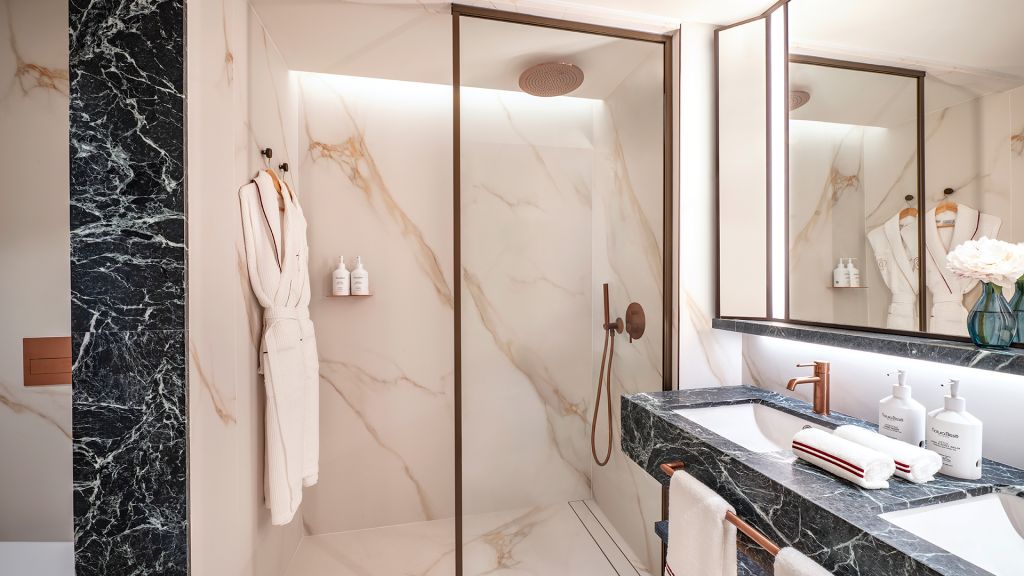Bright and spacious, our 38 m² rooms seamlessly blend contemporary style with subtle ethnic accents. Inspired by mid-century design, these rooms feature reinterpretations of iconic pieces, creating a timeless and sophisticated atmosphere. Each room boasts a 11 m² private terrace, perfect for enjoying peaceful moments outdoors. The luxurious bathrooms are designed to impress, offering large windows and the choice of either a dual rain shower with waterfall option or a relaxing bathtub. Located in the most tranquil zone of the hotel, these rooms span across floors 1 to 4.