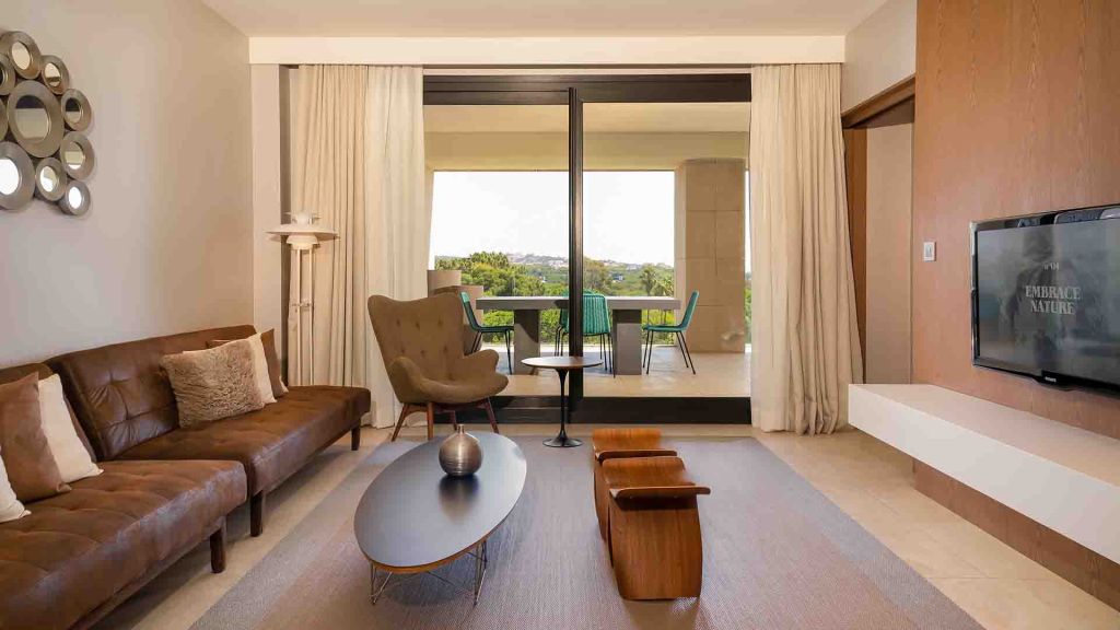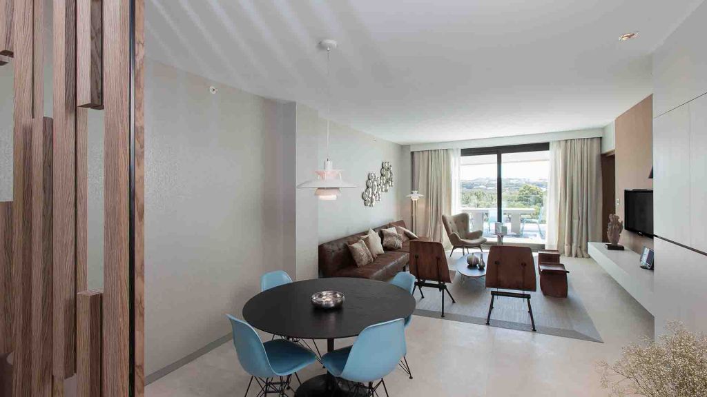 Rooms frame the sea or the mountains with floor‑to‑ceiling glass that invites both into your waking and dreaming hours. Each space offers soft linens, mid‑tone wood, and subtly patterned soft furnishings. Don Carlos Residences raise the experience with private pool and detailed service—the kind of attentive detail that never intrudes.