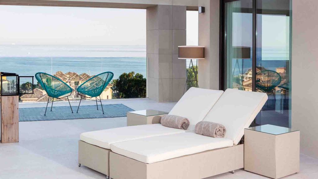 Experience the sophistication of our exquisitely renovated double rooms, featuring refined andalusian design. These rooms offer stunning views of the sea and the marbella coastline, inviting you to wonder at the beauty of the mediterranean sunsets. Situated on floors 4 to 13, each room spans up to 34 m² and features a private 7 m² terrace. The fully renovated bathrooms are equipped with either a refreshing shower or a relaxing bathtub, enhancing your stay with modern comfort. Some rooms can accommodate up to three guests with the convenience of a pull-out chair bed.