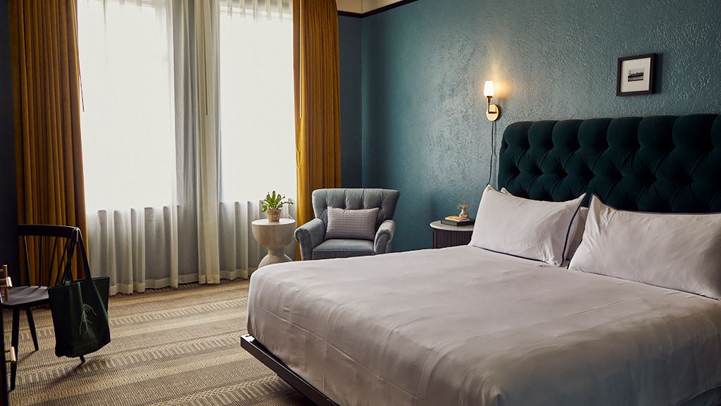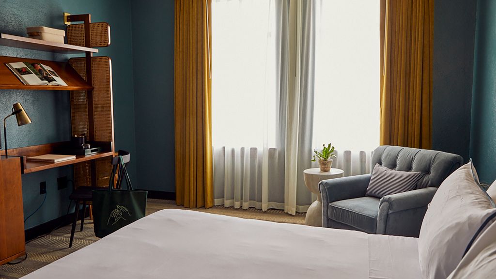 This trendy vibe extends to the stunning guest accommodations, each revelling in a memorable color palette of rich greens, golds, and natural light. King beds come as standard, while there’s also flatscreen TVs, complimentary Wi-Fi Internet, and exclusive bathroom amenities from Makeready and Red Flower.
