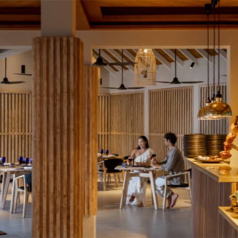 Emerald Faarufushi Resort & Spa is an all-inclusive resort that offers cuisine from around the world. Our favorite outlet is the dramatic Mediterraneo Restaurant, an overwater Mediterranean dining experience that’s perfect for romantic sunset dinners. There’s also steakhouse, Teppanyaki, and cocktails and snacks at the lively Sunset Pool & Bar.
