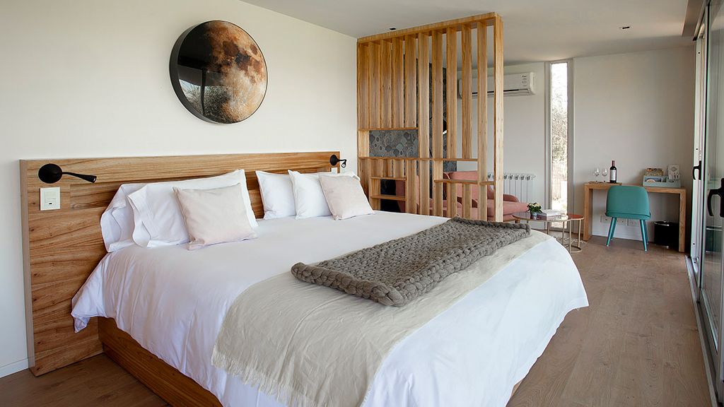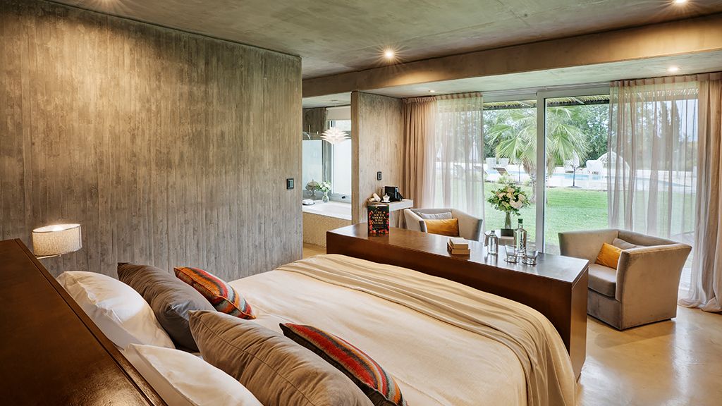 Nestled in one of the finest wine regions in the world. Private yet offering an abundance of natural light and endless views as each faces north onto the malbec vines and the soaring andes beyond them. 1 king size bed or 2 twin beds 42 m2 / 450 sqft sleeps 2 a small sitting area and a large outdoor terrace accessed by floor-to-ceiling sliding glass doors