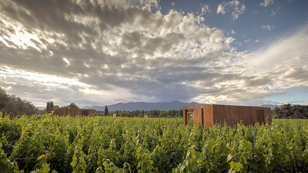 The hotel is located just outside the city in the heart of Mendoza's premier Malbec region of Lujan de Cuyo. Guests will immediately be struck by the playful, low-key exterior of the hotel which aims to compliment its stunning natural surrounds. Just 16 guest accommodations are housed within, each offering up sweeping views, smart details and spacious living areas.