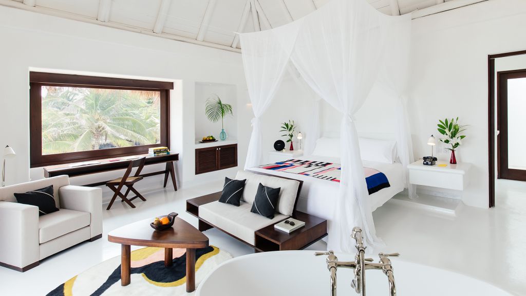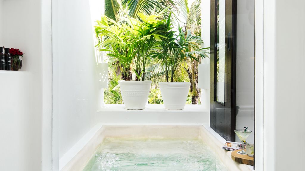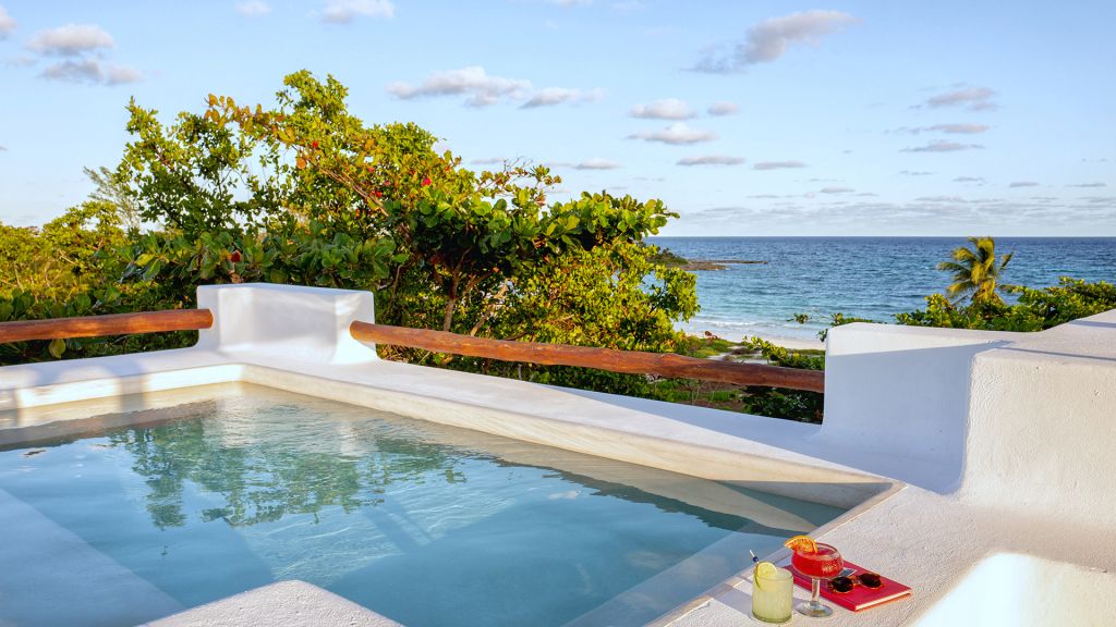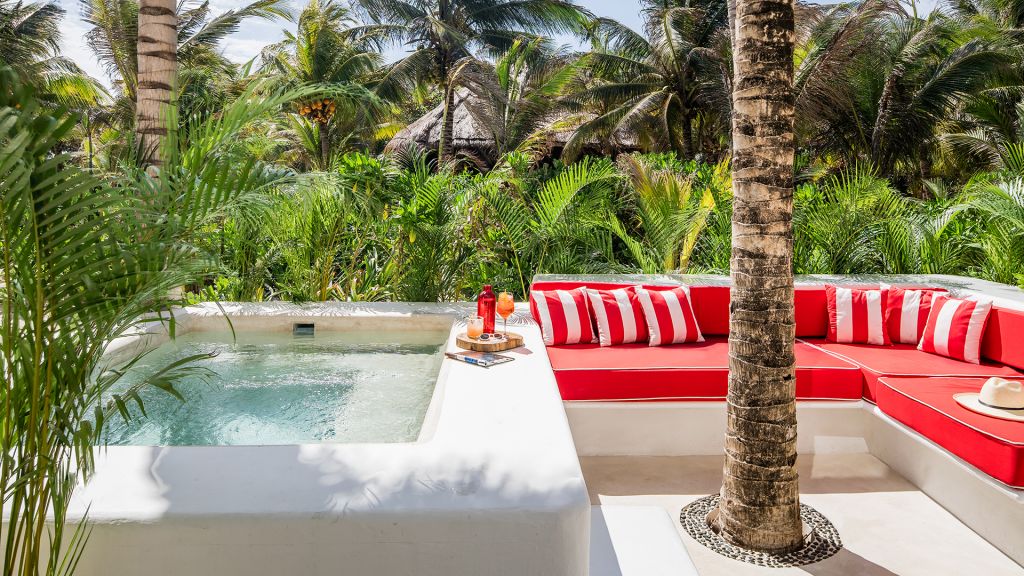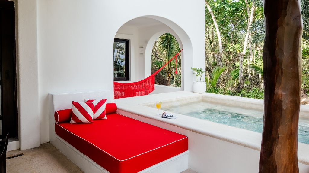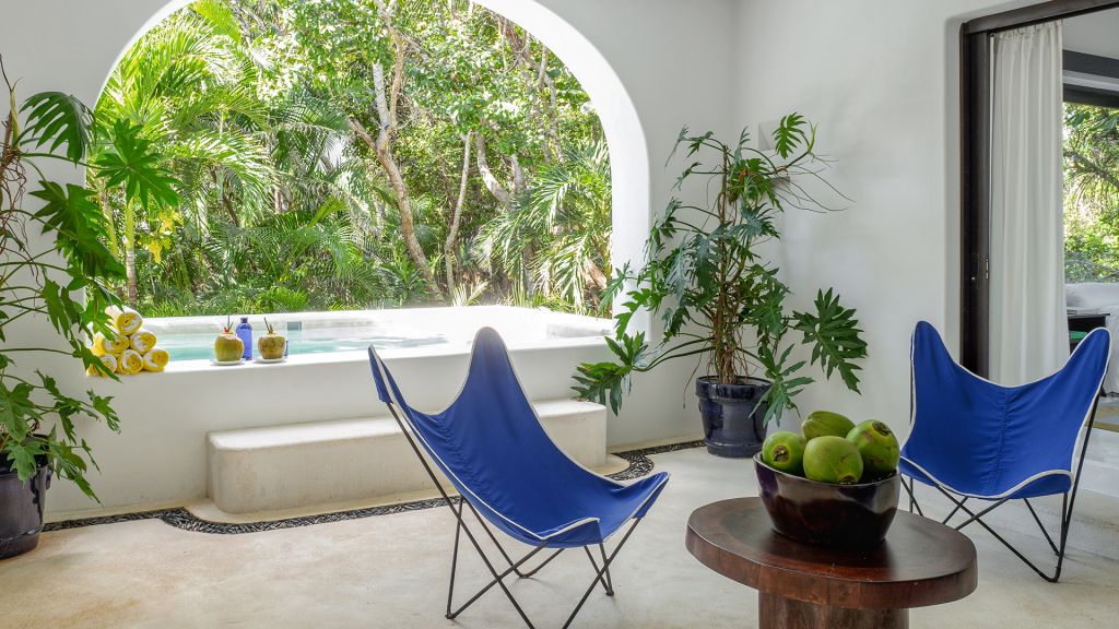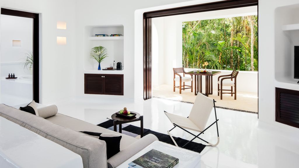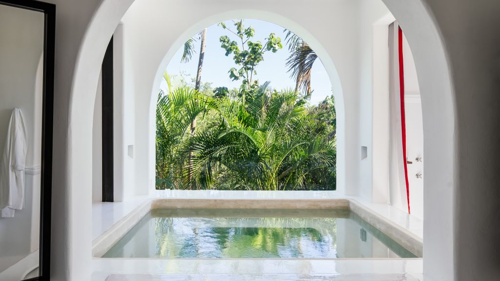Features plunge pool, minibar, rain-concept shower and organic bathroom amenities, flatscreen TV, Wi-Fi and Nespresso coffee machine.