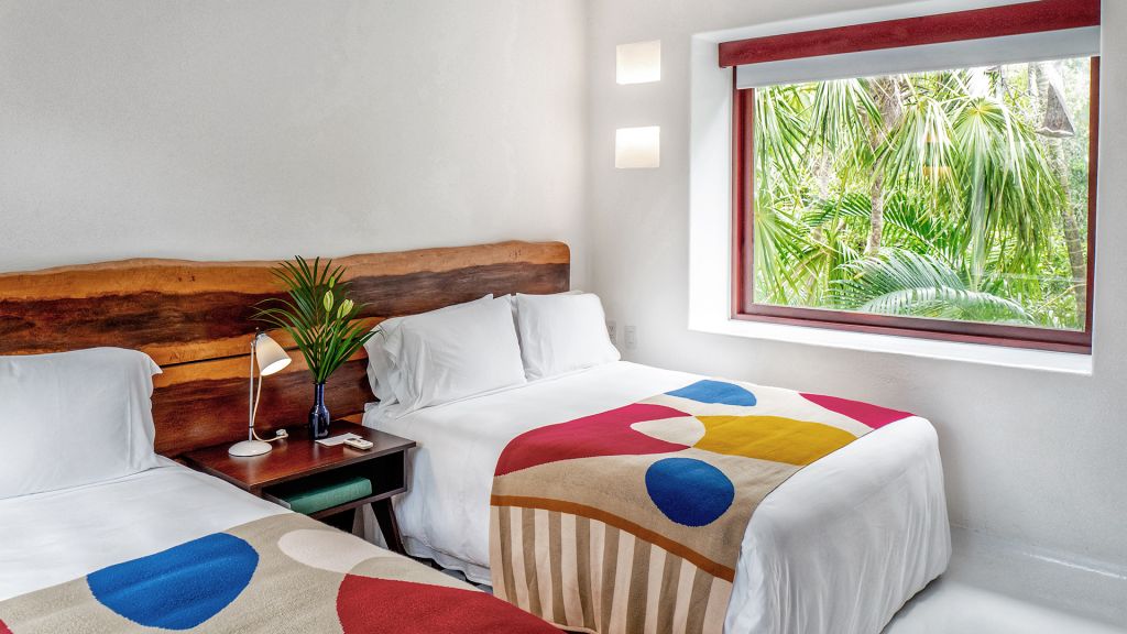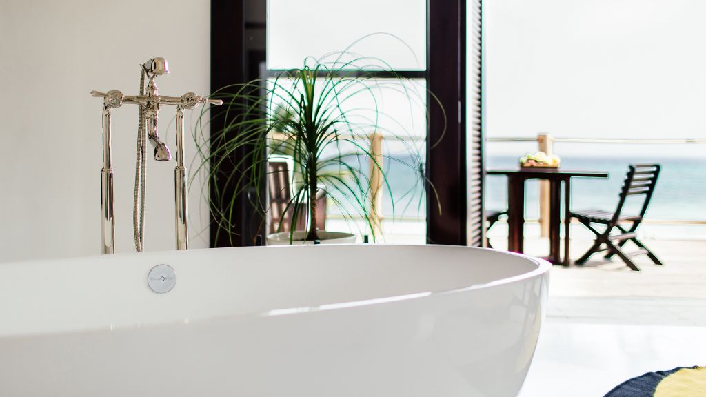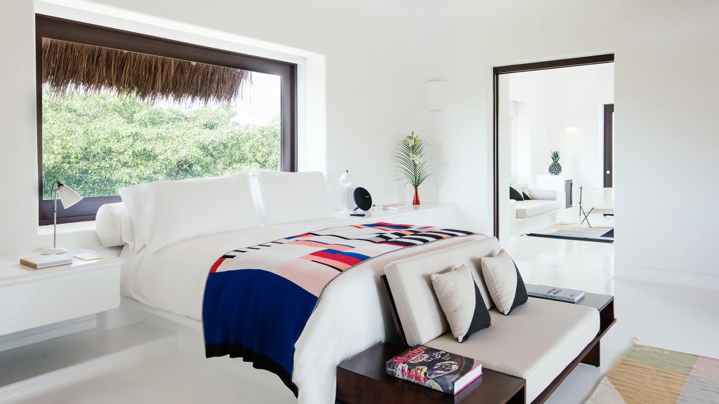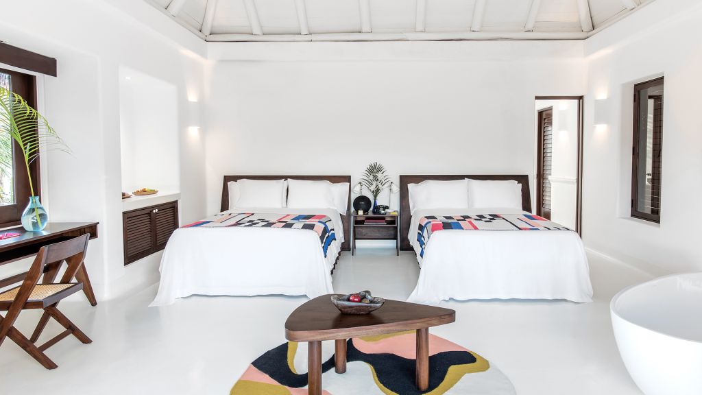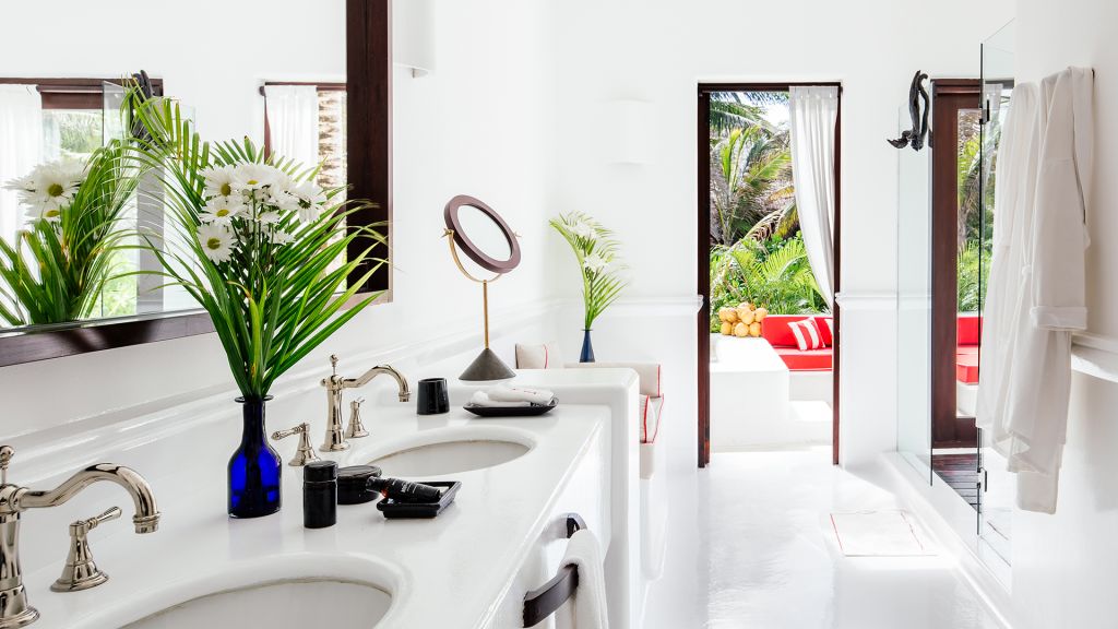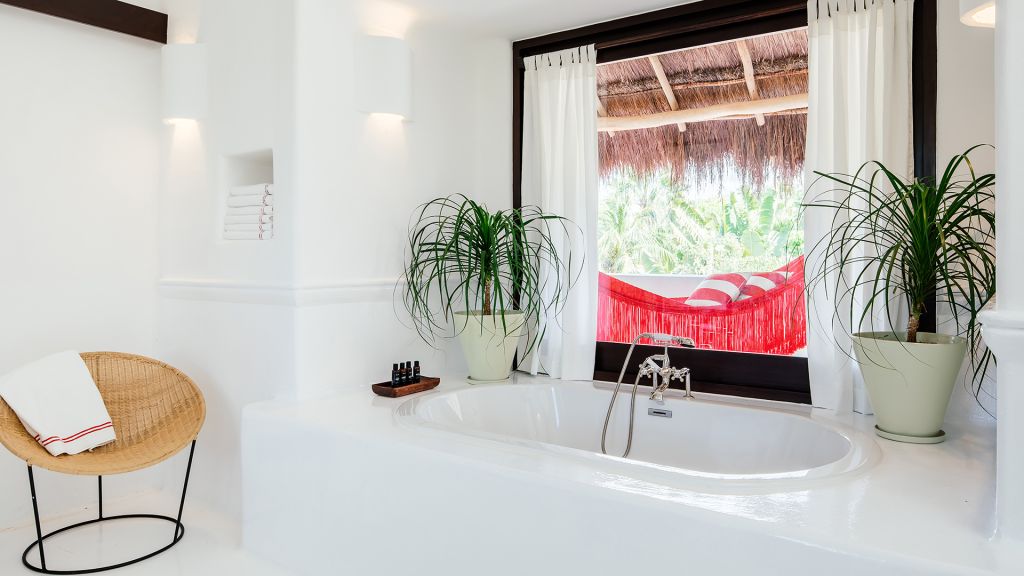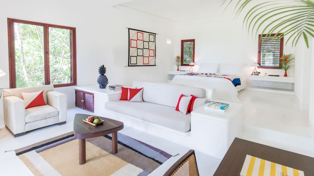 Barely 20 meters from the sea, Beach Suite features a private beachfront terrace, spacious bathrooms including double showers with direct ocean views, an in-room double bathtub, air conditioning, and all of Hotel Esencia’s signature amenities. All accommodations at Hotel Esencia feature walk-in closets, wide-screen smart TVs, bluetooth speakers, and all of Hotel Esencia’s signature amenities. 105m2 - Sleeps up to 3.
