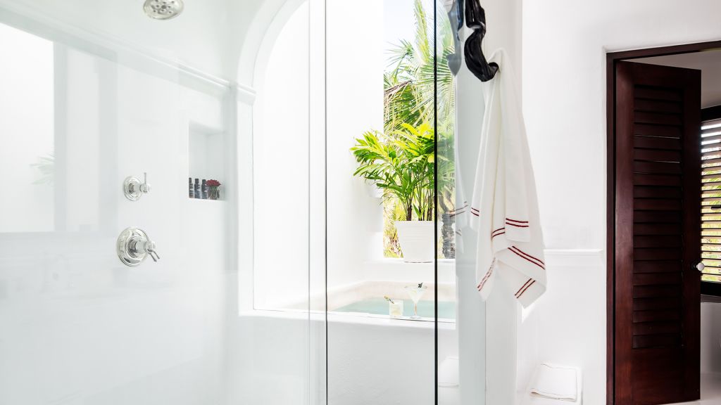 Each of our two spectacular Master Beach Suites is designed with an eye toward maximum privacy, comfort, and independence. With windows on three sides, and extremely spacious bathrooms with love seats, these suites also include a private heated plunge pool. The ground level Master Beach Suite features an outdoor plunge pool surrounded by a terrace with built-in seating, while the upper level suite features an extremely private heated plunge pool next to the double walk-in shower. Our Master Beach Suites are available to connect to either a Jungle Suite or Jungle Suite with Plunge Pool, for families or friends traveling together who wish to have the entire top or bottom floor of the building to themselves for maximum privacy. 115m2 - Sleeps up to 3.