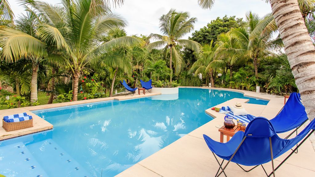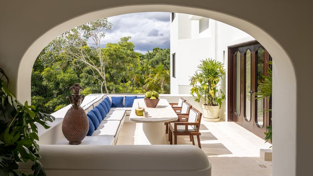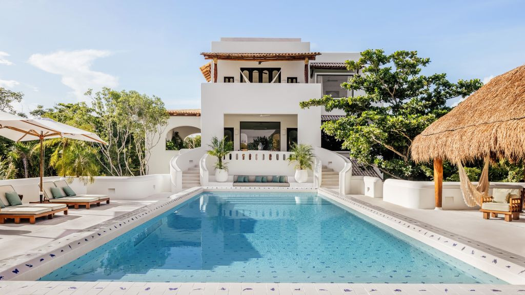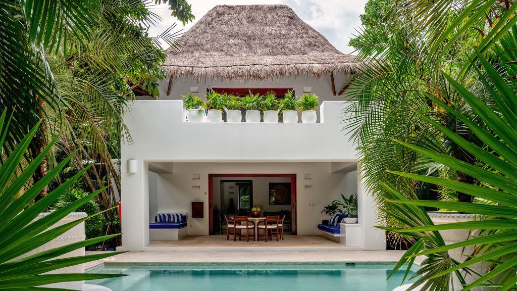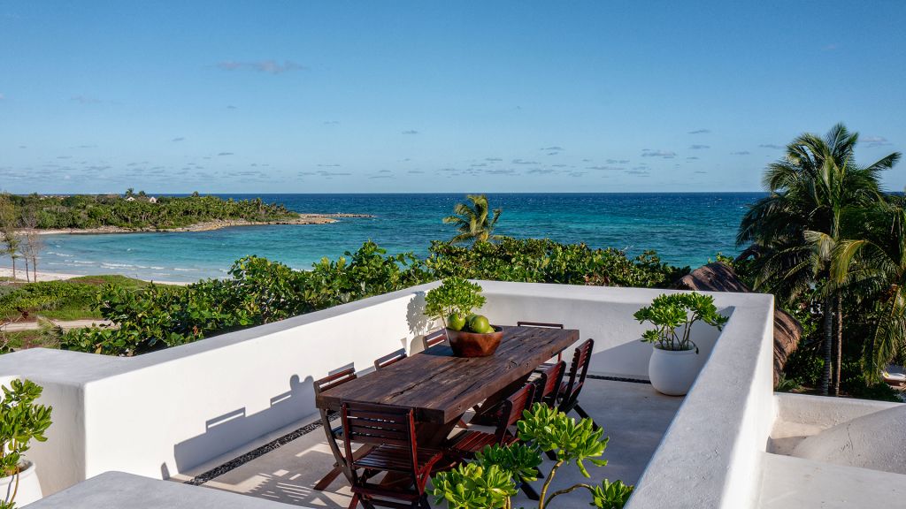 ‘Yum-Ha’ is a majestic colonial-style Villa discreetly located on a lush 15 acre property right next to Hotel Esencia. The 4-bedroom Villa is just a 3 minute walk from the beach and can accommodate up to 8 people. The Main House features ensuite bathrooms and private terraces overlooking the garden, a Mexican style kitchen, living room, dining room, and a terrace with outdoor dining area. Villa Yum-Ha features a large swimming pool and comes with a private butler and house keeping services. Sleeps up to 8.