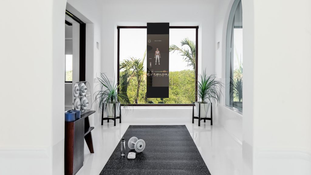 These Duplex 2-bedroom residences feature a master suite with 1 king bed, a bathroom suite with separate walk-in shower and bath tub, private outdoor terrace with seating area and hammock, and a second room with 2 queen beds and a bathroom with shower. The ground level features a large private heated swimming pool, outdoor terraces with seating and dining table, a spacious living-dining room, a guest bathroom, complete media room with wide-screen smart TV, and a brand new personal fitness room, with equipment by Technogym and Peloton. With ceiling fans and air conditioning, bluetooth speakers, Butler service and Hotel Esencia signature amenities. 336 m2 - Sleeps up to 6.