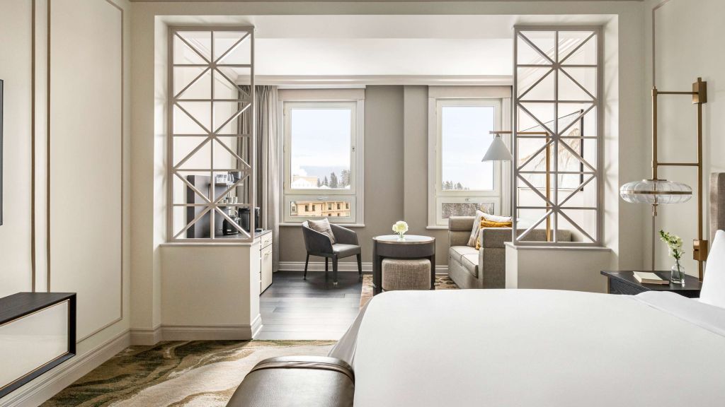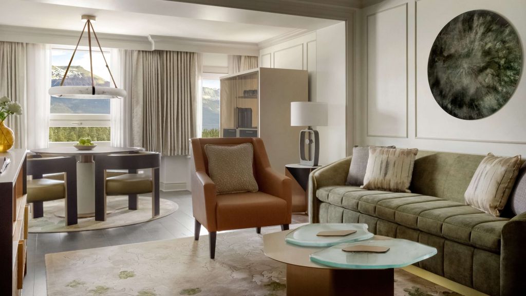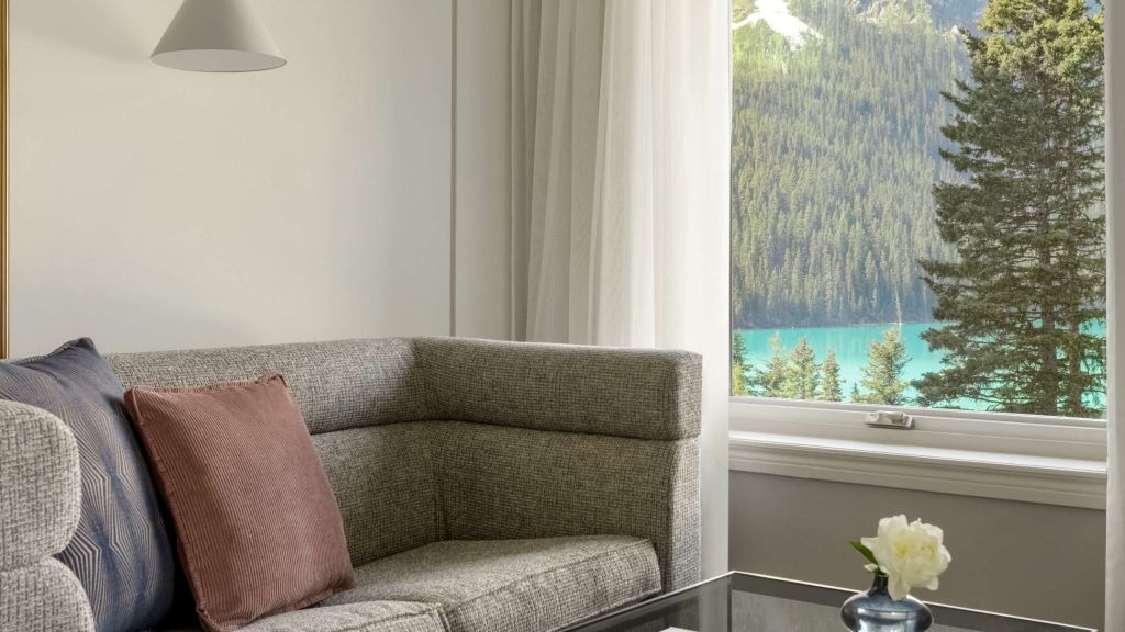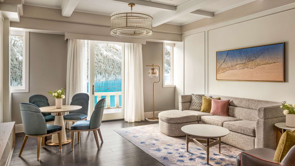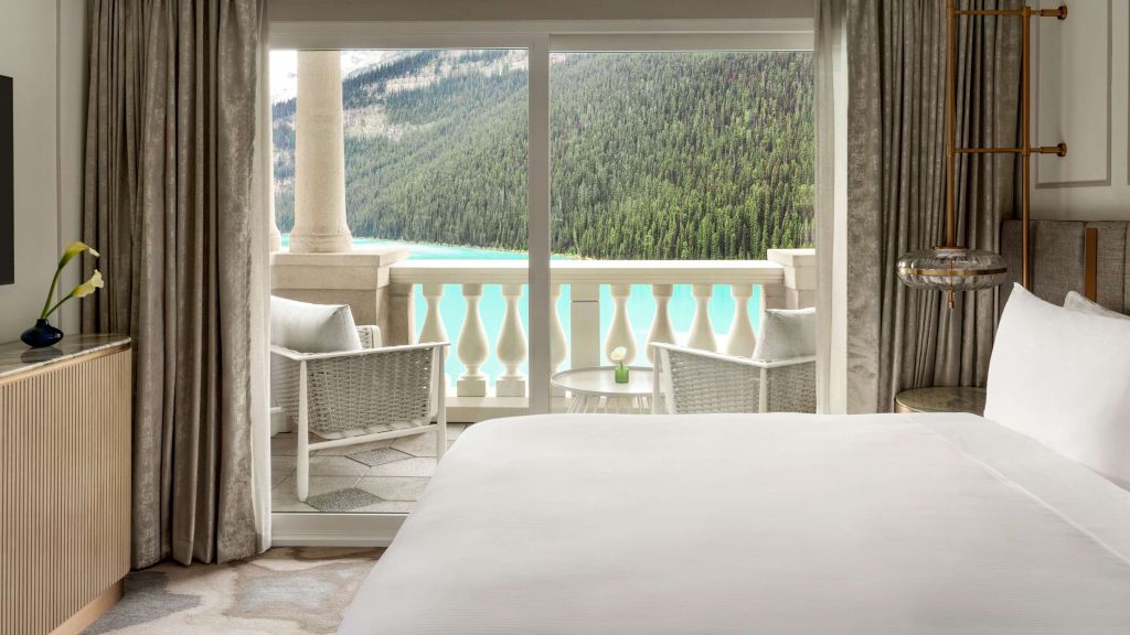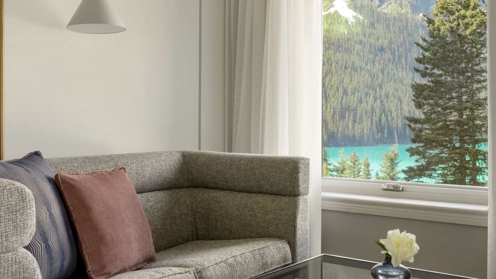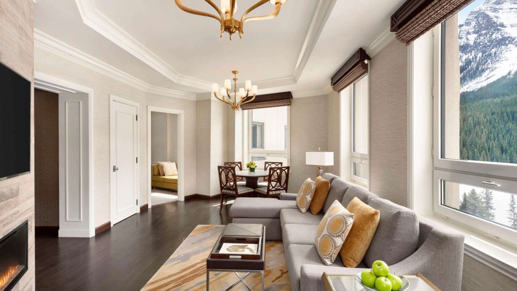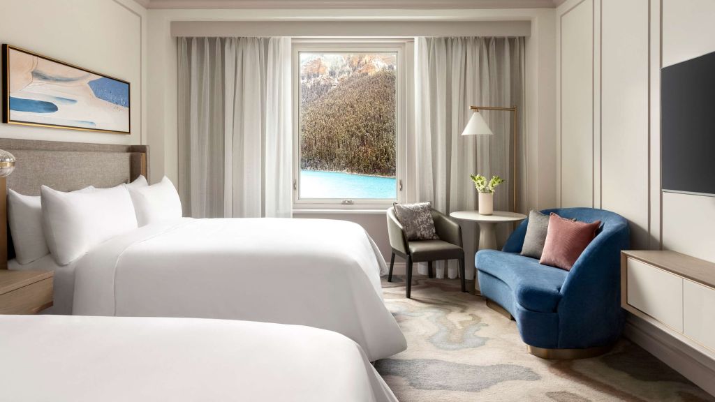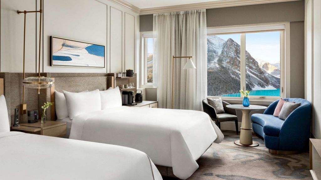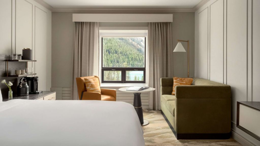 Features 1 King bed, sofa bed, views of Lake Louise and surrounding glaciers and a sitting area. Includes complimentary breakfast, Gold Lounge access, TV, coffee maker, hair dryer, safe, kettle and Wi-Fi Internet.