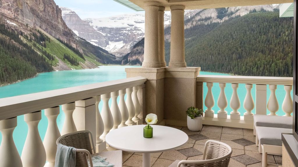 Features 1 King bed, view of Lake Louise and surrounding glaciers, sofa bed, living area, private balcony, dining area, powder room and ensuite bathroom. Includes complimentary breakfast, Gold Lounge access, TV, coffee maker, hair dryer, safe, kettle and Wi-Fi Internet.