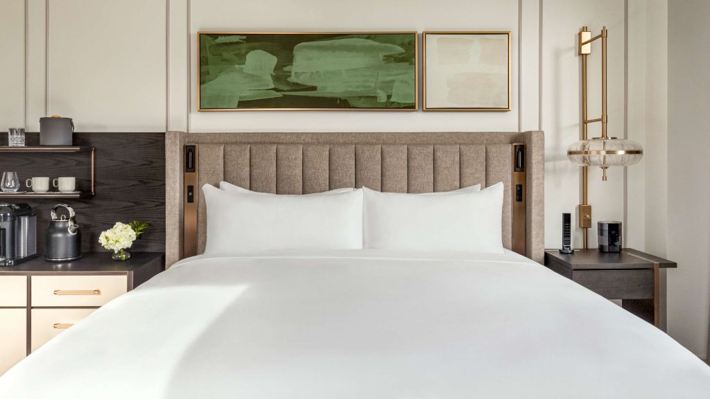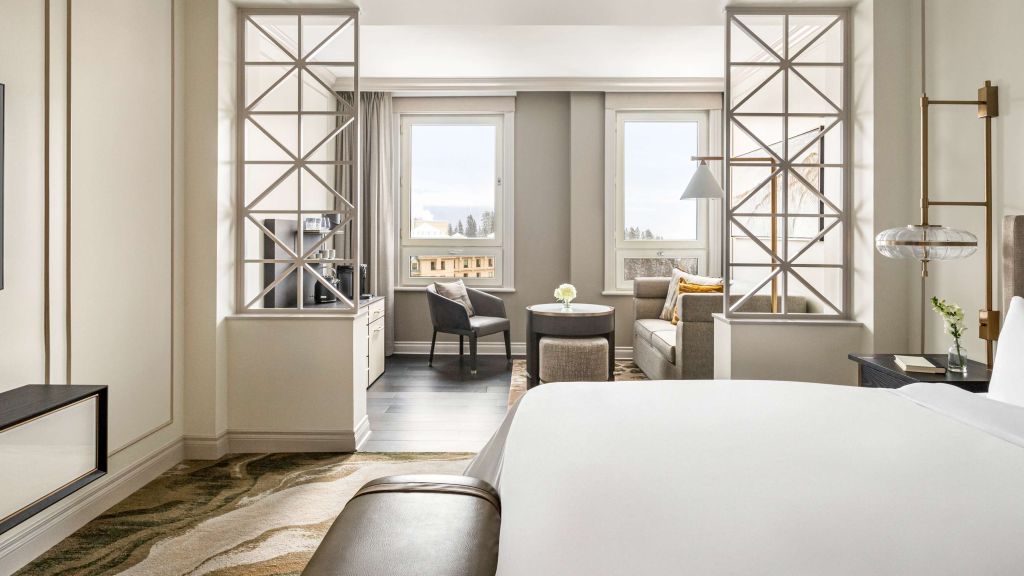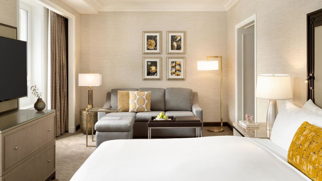 Features 1 King bed, unique artwork and views overlooking the chateau grounds and living area. Includes complimentary breakfast, Gold Lounge access, TV, coffee maker, hair dryer, safe, kettle and Wi-Fi Internet.