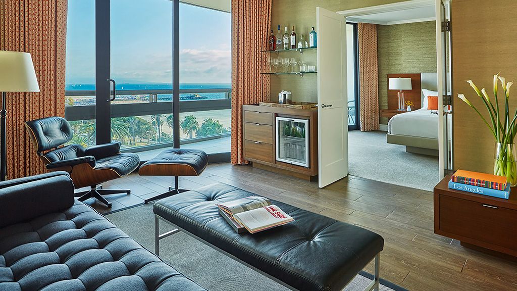 A 10th floor exclusive, the Ocean Tower Suites' two furnished balconies offer the breathtaking views of the golden sands and blue Pacific vastness that California's coastal dreams are made of. With vistas of Malibu to the north or Santa Monica Pier to the south, mid-century modern style & endless upscale touches conspire to create everlasting joy.