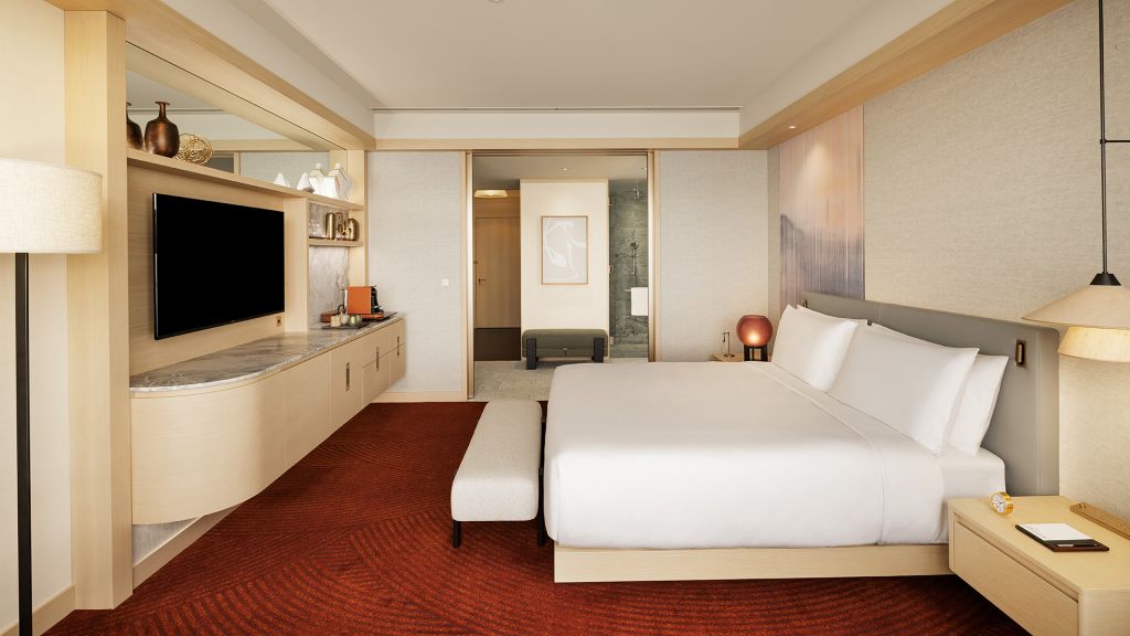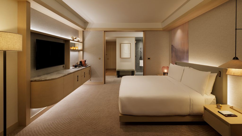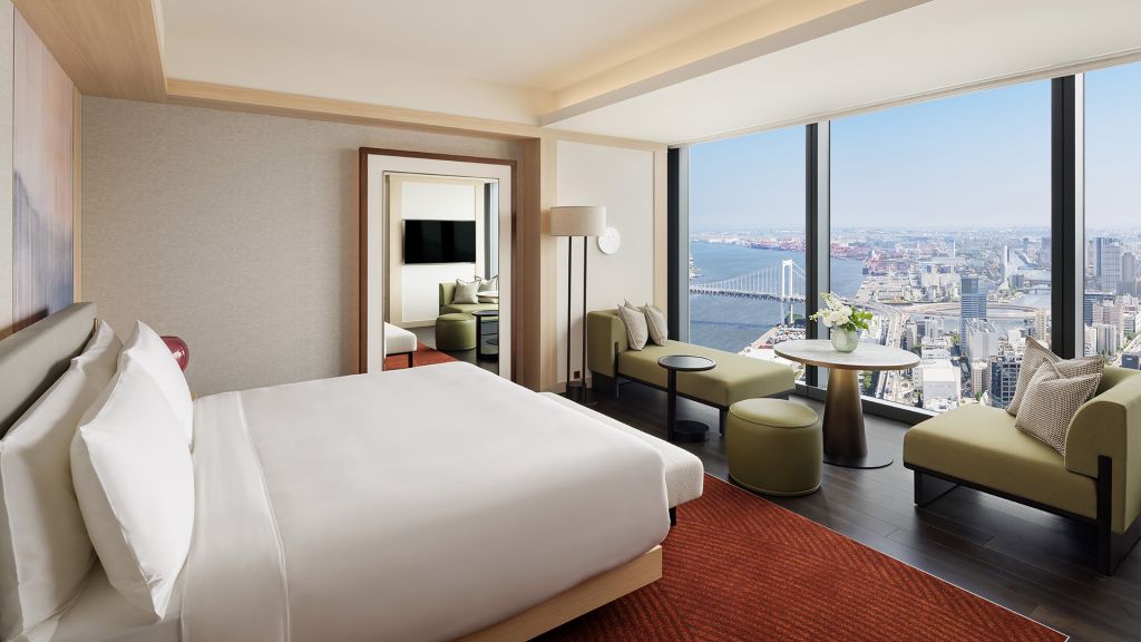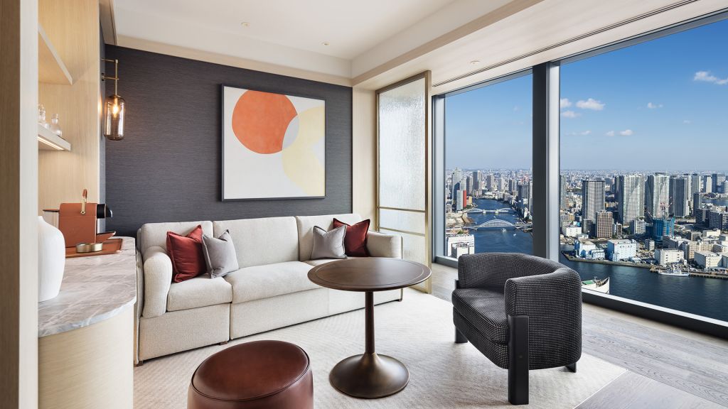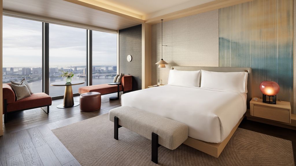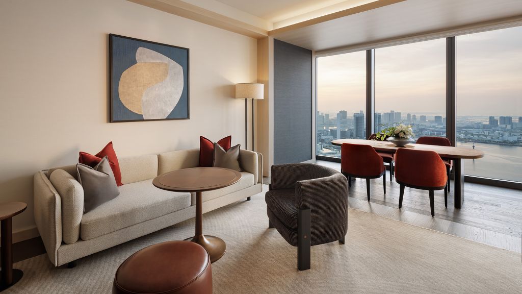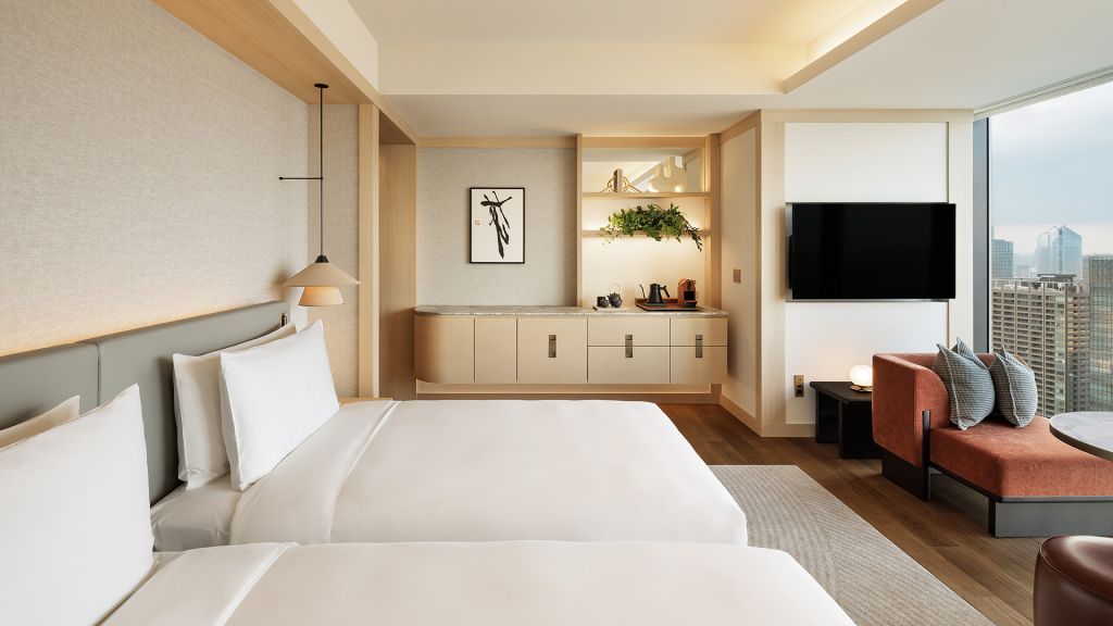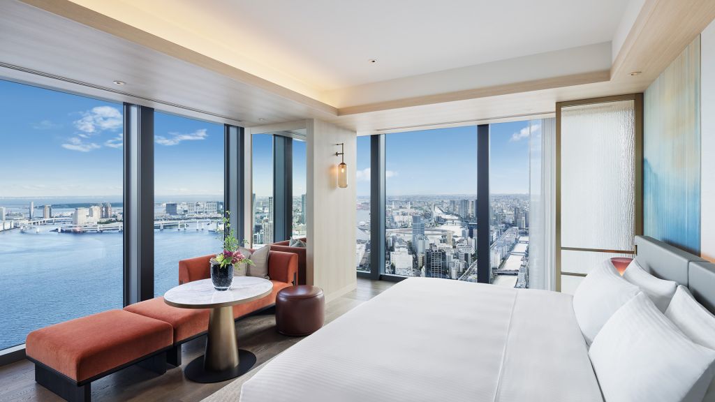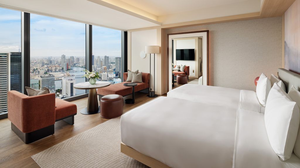 Wake up to the awe-inspiring Tokyo city skyline, with a bed perfectly placed to reveal a truly unique view. This expansive 59 sqm room is a haven of calm, adorned with curated Japanese art and soft textures, and featuring a beautifully designed bathroom. Enjoy a spacious sanctuary and premium features for an unforgettable escape.