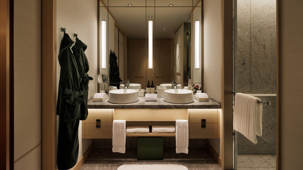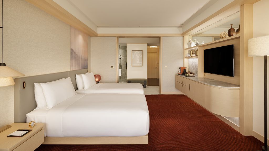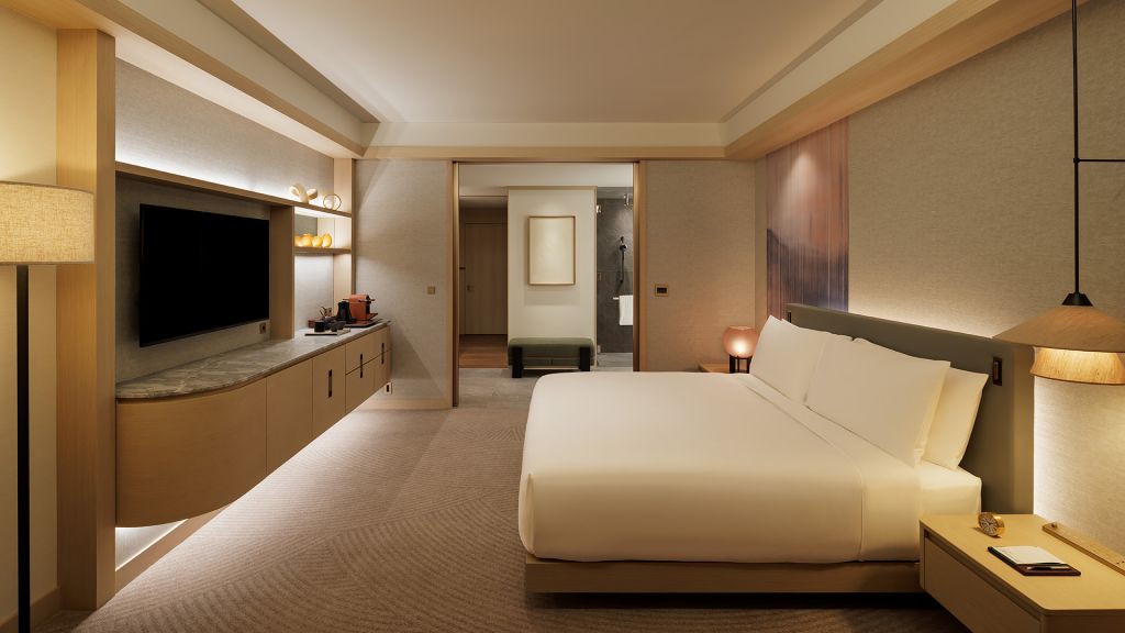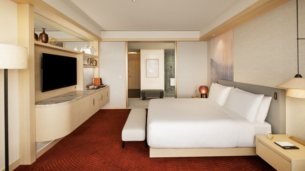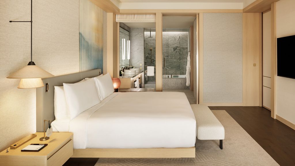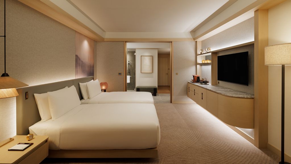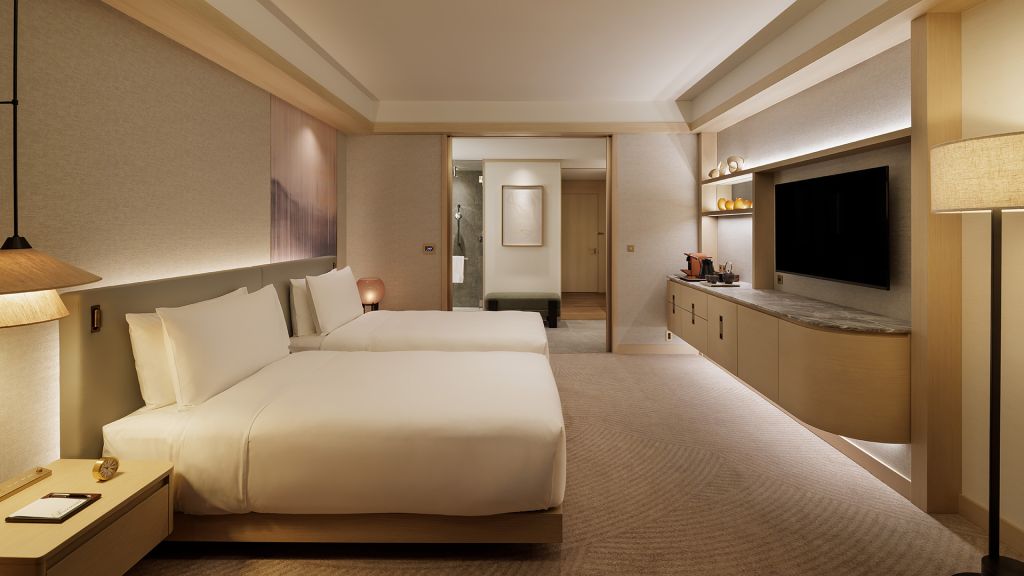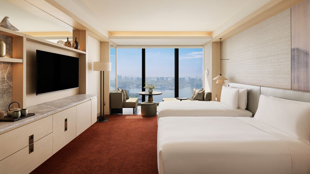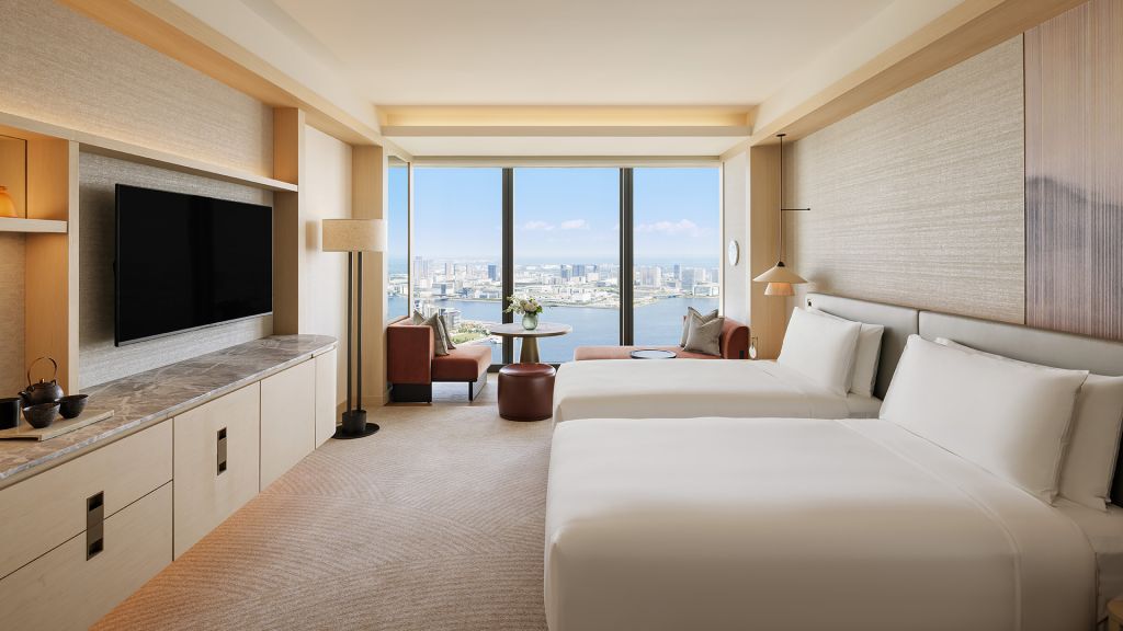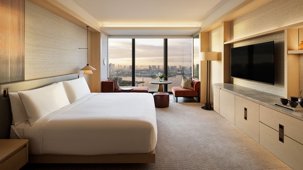 Wake up to the awe-inspiring Tokyo city skyline, with a bed perfectly placed to reveal a truly unique view. This expansive 59 sqm room is a haven of calm, adorned with curated Japanese art and soft textures, and featuring a beautifully designed bathroom. Enjoy a spacious sanctuary and premium features for an unforgettable escape.