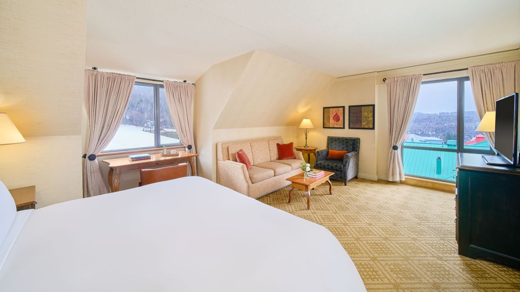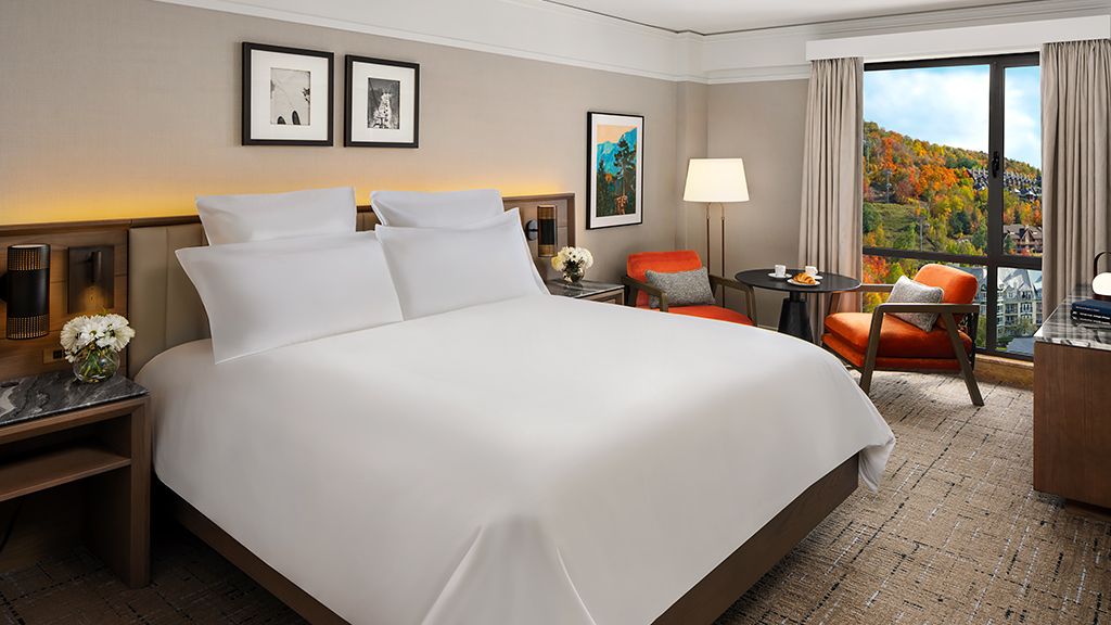 Newly renovated, view of the Tremblant village, personalized service, Fairmont Gold lounge access, private check-in-out, connecting room options available. The Fairmont Gold experience includes amenities such as a complimentary deluxe continental breakfast, afternoon tea, savory canapés and beverages from the honor bar in the tranquil setting of the exclusive Fairmont Gold Lounge.