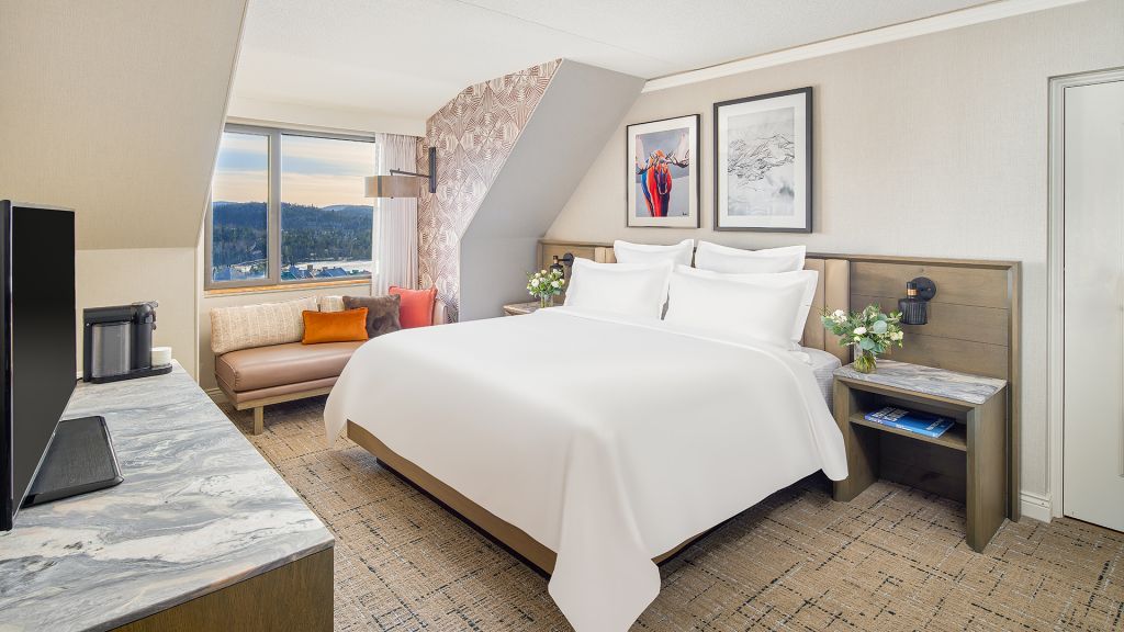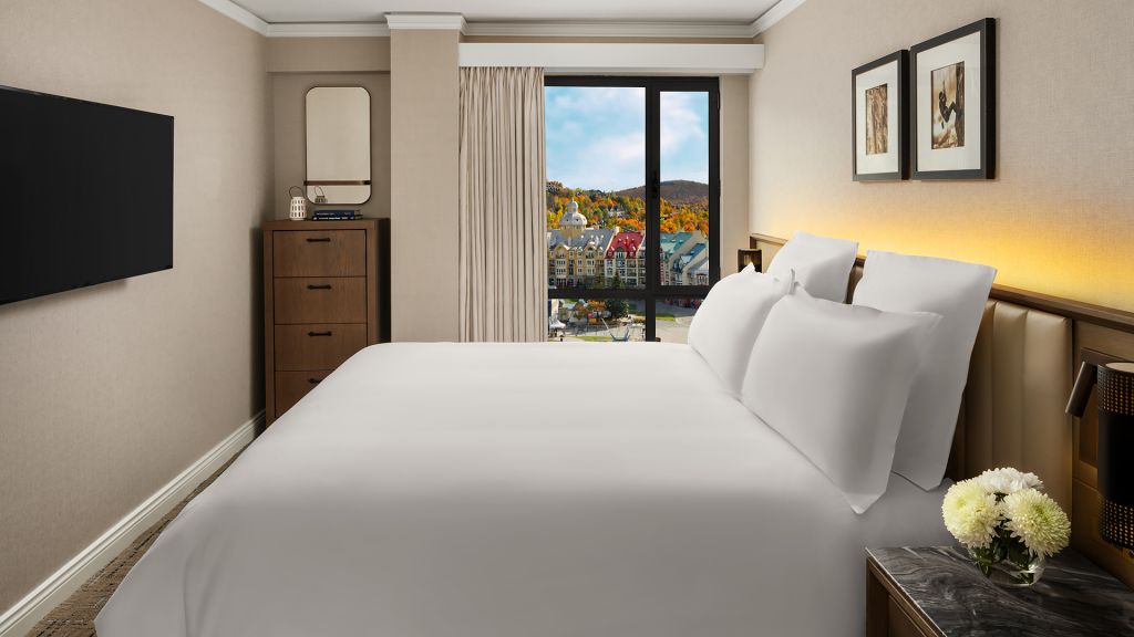 Newly renovated luxurious one bedroom suite with views of Tremblant village or the mountains, Fairmont Gold lounge access, private check-in-out. The Fairmont Gold experience includes amenities such as a complimentary deluxe continental breakfast, afternoon tea, savory canapés and beverages from the honor bar in the tranquil setting of the exclusive Fairmont Gold Lounge.