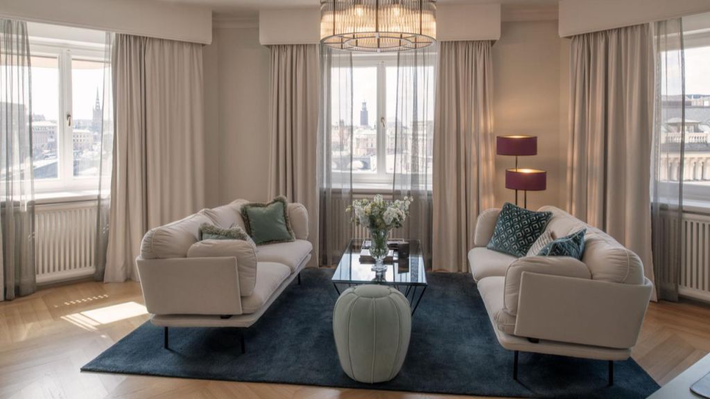 Rooms and suites combine elegant Swedish design with modern comforts. Each space is thoughtfully arranged to maximize natural light and views of the city or harbor. From suites with private salons to rooms offering expansive vistas, the accommodations cater to both intimate retreats and extended stays, blending classic details with contemporary touches for a personal, refined experience.
