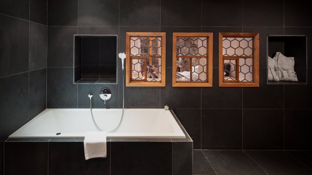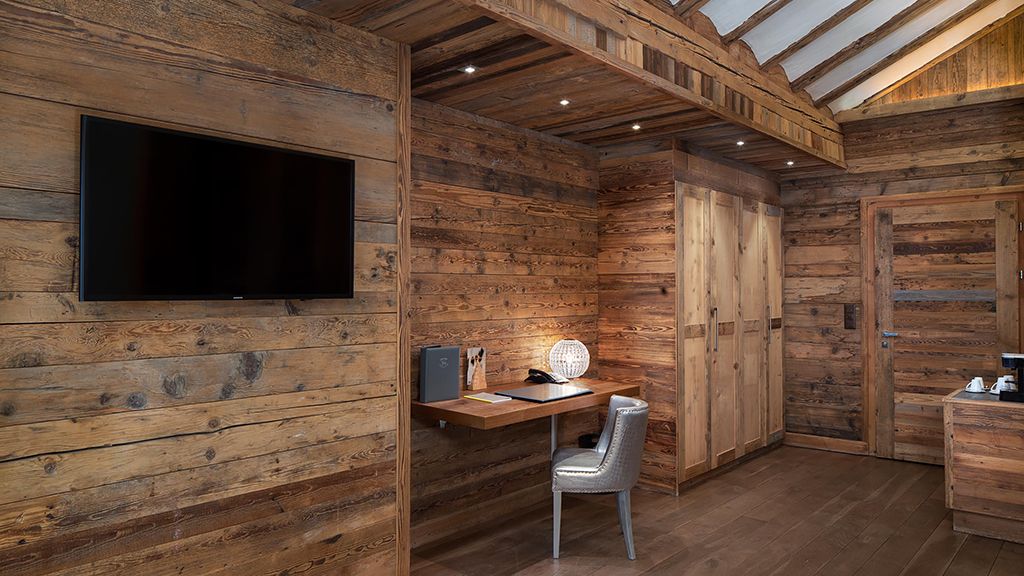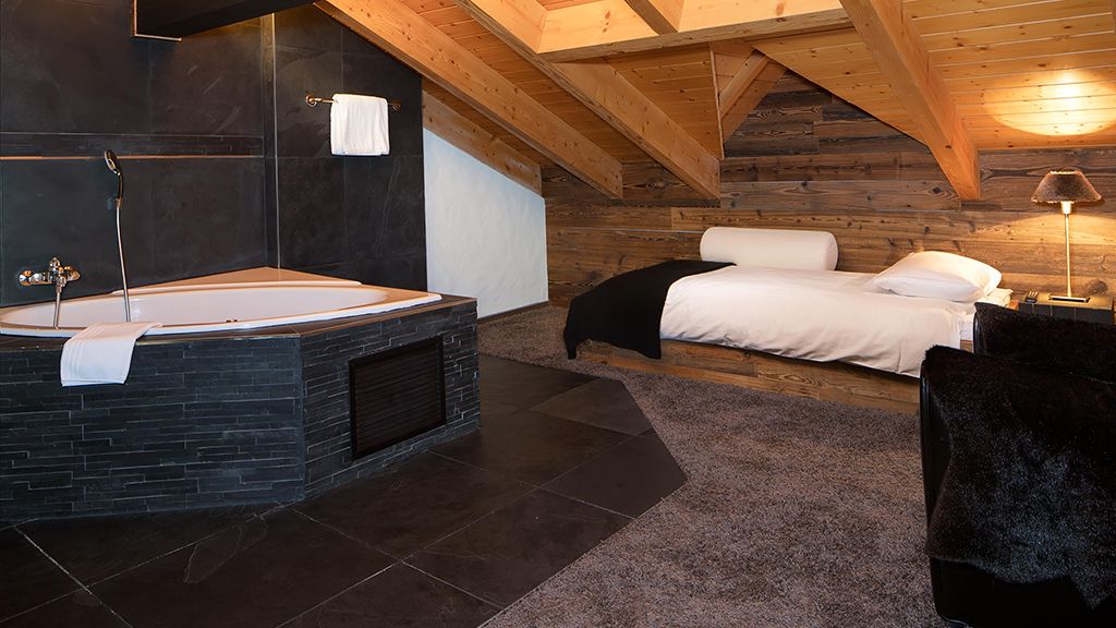 1 king size bed – 85sqm / 915sqft – separate sitting room with fireplace – south-facing balcony with mountain views – old wood décor – en-suite bathroom with jacuzzi and shower – separate toilets – bathrobes and slippers – hairdryer – hotel toiletries – complimentary wi-fi – flat-screen tv with dvd player – telephone – desk – heating – safe – minibar – nespresso machine and kettle – 1 extra bed possible – charges apply – 3 persons maximum