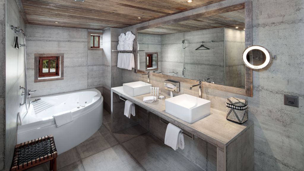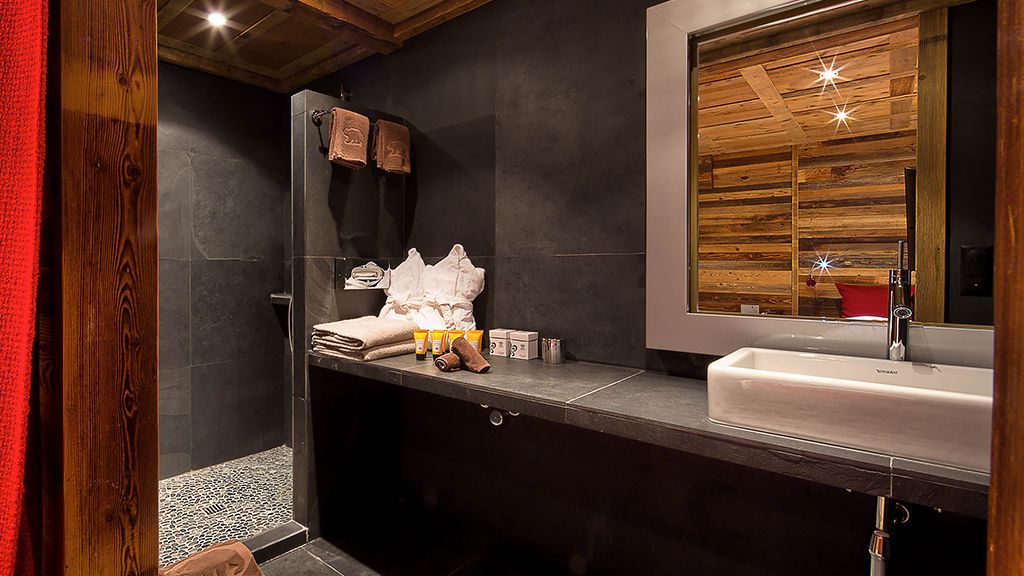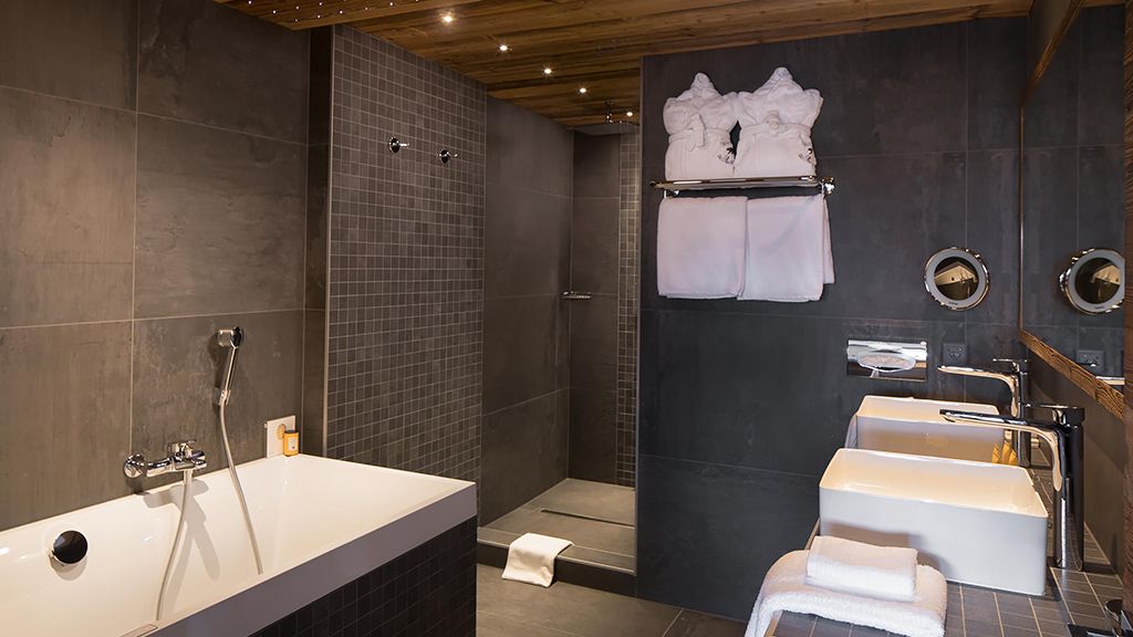 3 bedrooms each with 1 king size bed – 200sqm / 2153sqft – separate sitting room with fireplace – large private terrace overlooking the alps – 3 en-suite bathrooms one with jacuzzi and shower the others with just a shower – separate toilets – bathrobes and slippers – hairdryer – hotel toiletries – complimentary wi-fi – flat-screen tv – telephone – desk – heating – safe – minibar – 1 extra bed possible – charges apply – 7 persons maximum