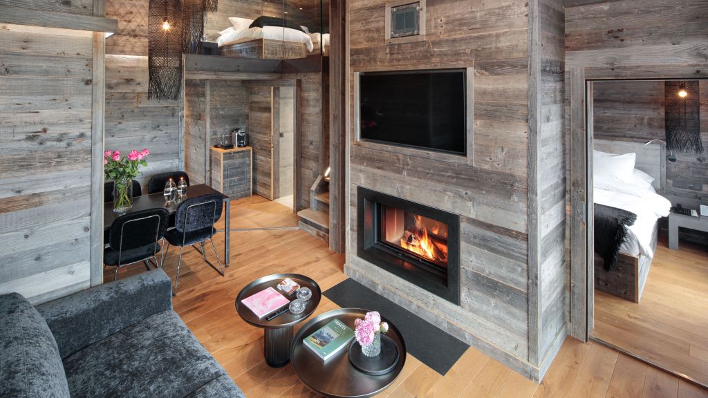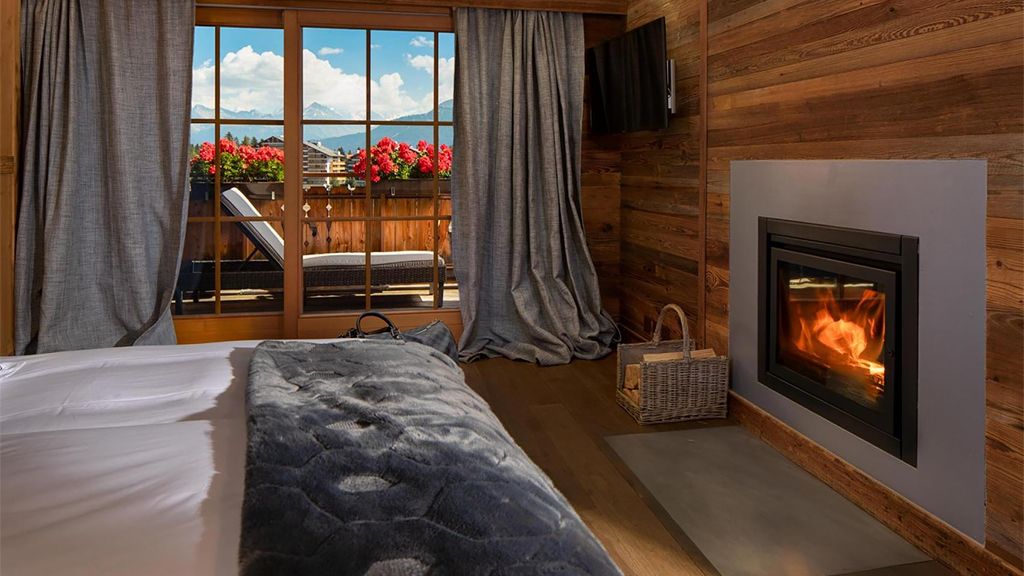 1 king size bed – 65sqm / 700sqft – sitting area with fireplace – south-facing balcony with mountain views – en-suite bathroom with jacuzzi and shower – separate toilets – bathrobes and slippers – hairdryer – hotel toiletries – complimentary wi-fi – flat-screen tv – telephone – desk – heating – safe – minibar – 1 extra bed possible – charges apply – 3 persons maximum