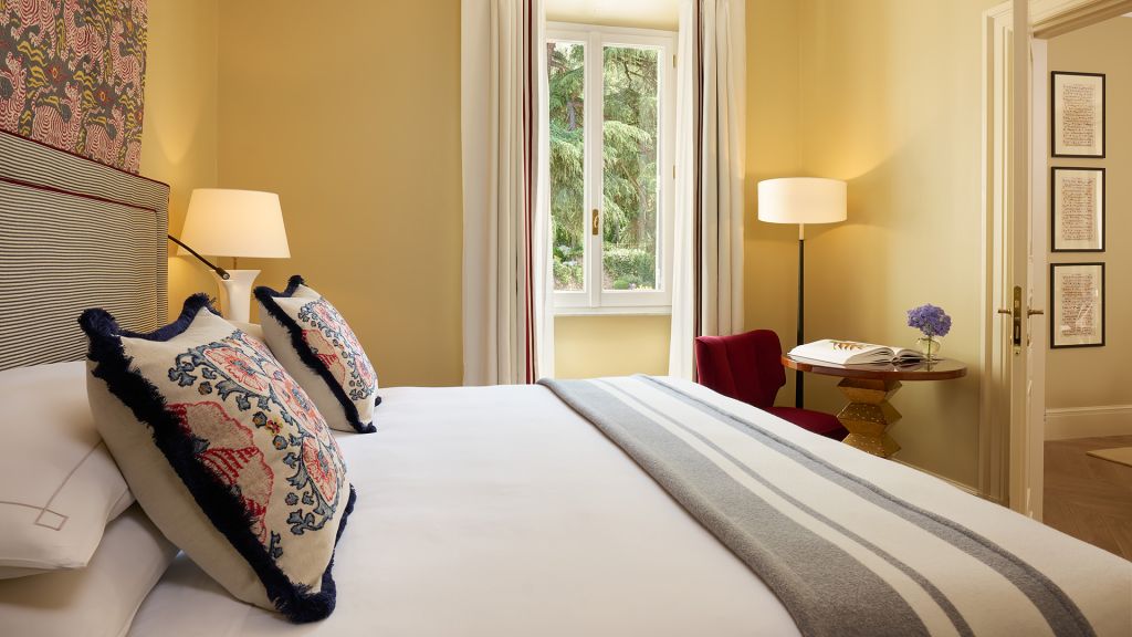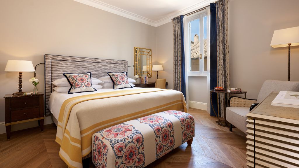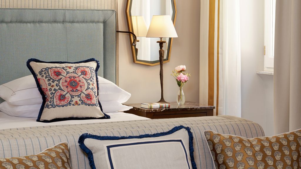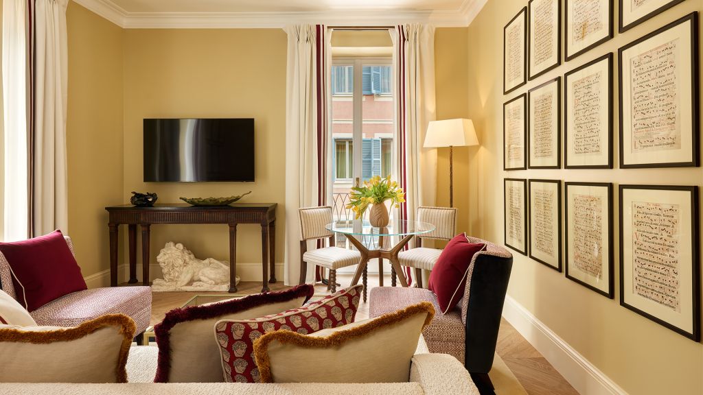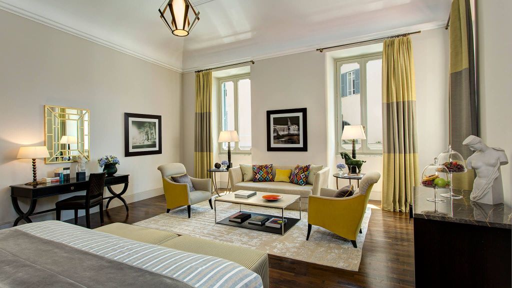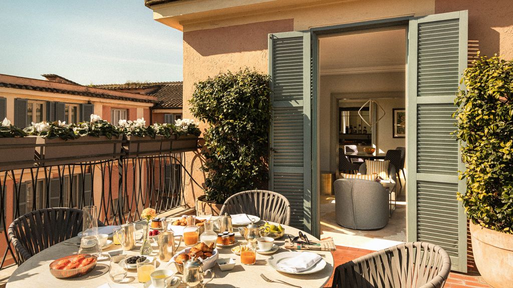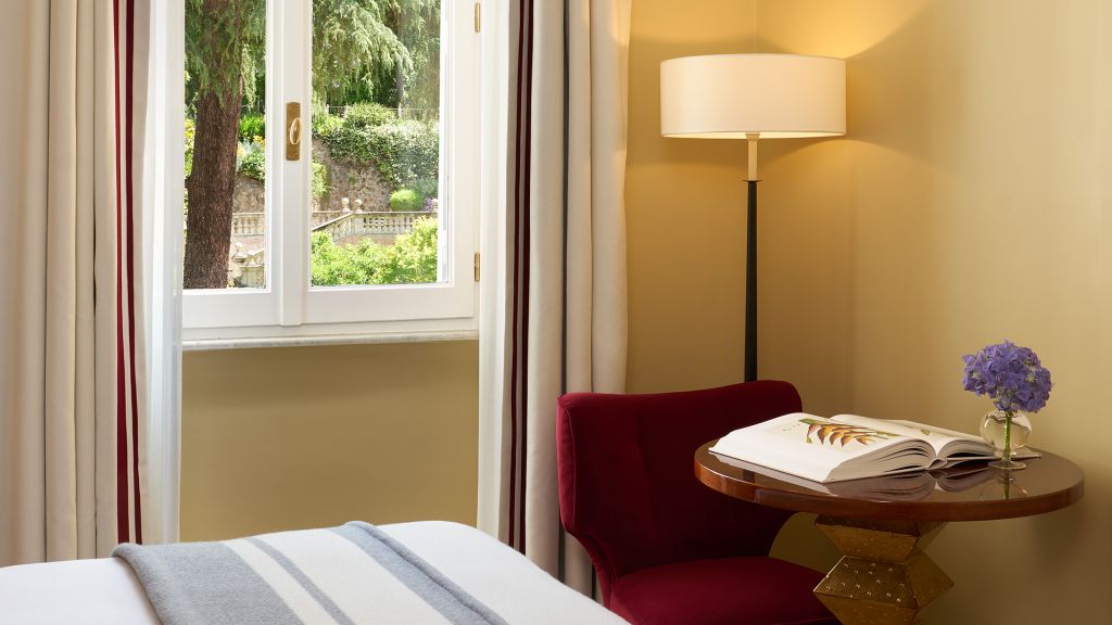 Rooms and suites have sumptuous drapes and furnishings, bathrooms in marble or marble mosaic tile, and modern artwork, including signed original photographs of flowers by Robert Mapplethorpe. The Nijinsky Suite has a spacious private terrace overlooking the city - close to the heart of Rome, but far enough away that you can hear yourself think.