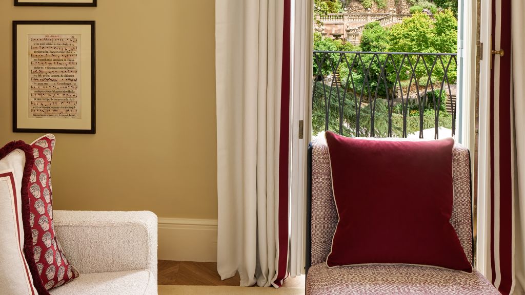 Vaselli suite with terrace -1 king bed -53sqm 570sqf -view of the secret garden living room -